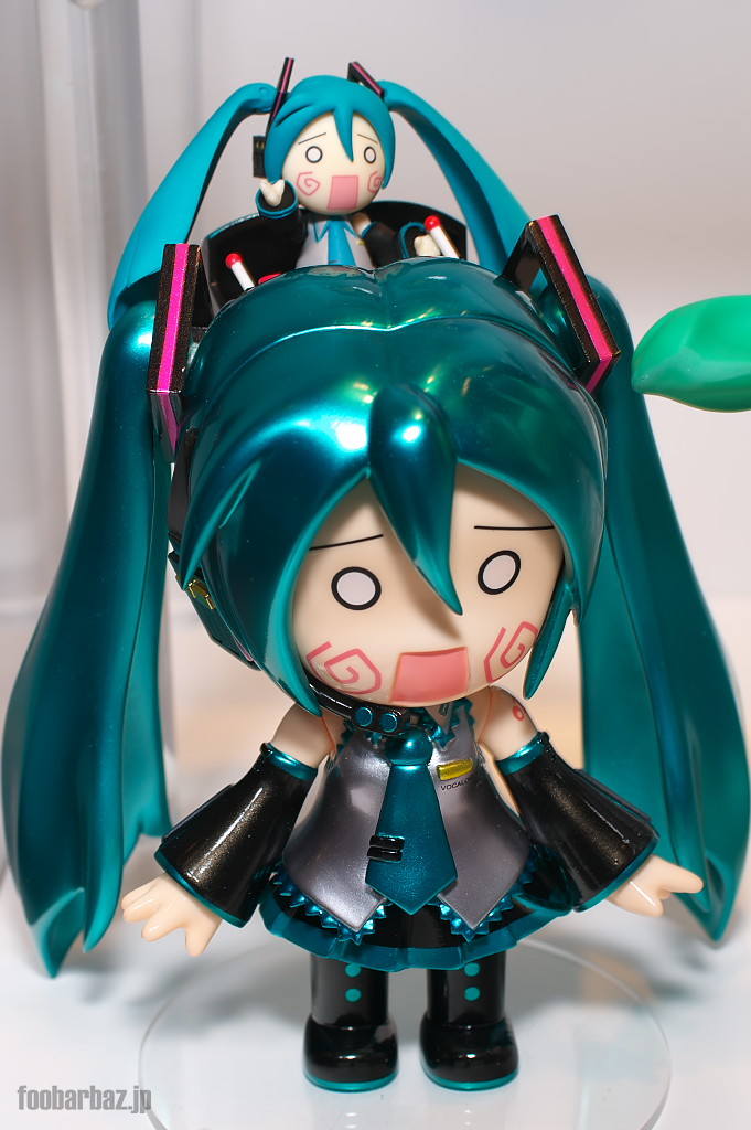 上の戦争ミクの原型を手がけられた植物少女園さんのブースでも展示されていました。 こちらはよりルナティックなミクさん(^^; 植物少女園の石長氏は,レーシングミクの原型も手がけられています。 |