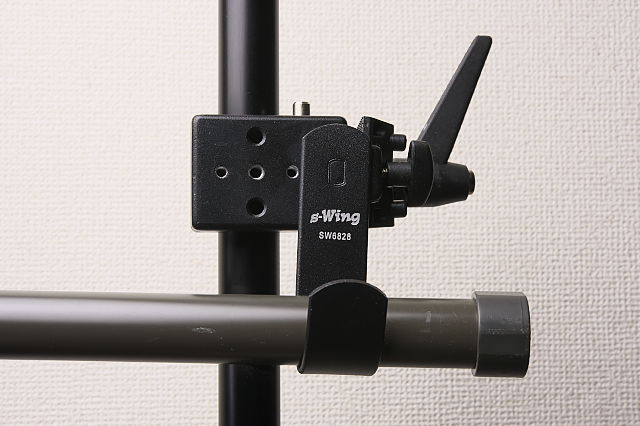 今まではホームセンターで買ったプラ皮膜パイプで組んだついたてで吊り下げていたのですが,これがまたライトスタンドをあちこち移動するときに邪魔なのですよ。