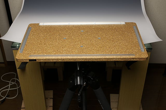 テーブルの裏に三脚用ねじ穴が開いており,こうやって三脚や雲台に固定可能です。