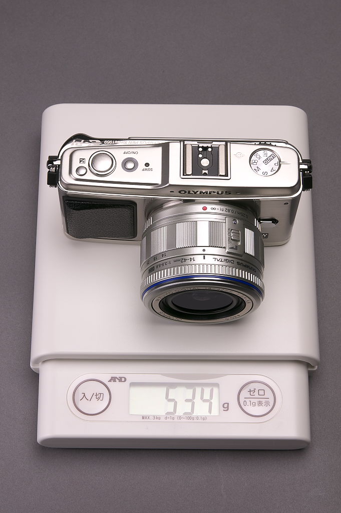 14-42mm装備,バッテリ,SDカード込みで534g。