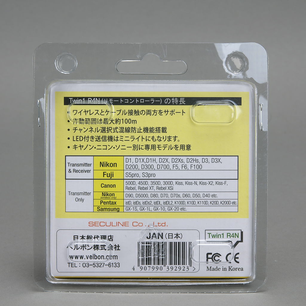 パッケージ。製造は韓国のセキュライン社で,日本ではベルボンが取り扱っています。