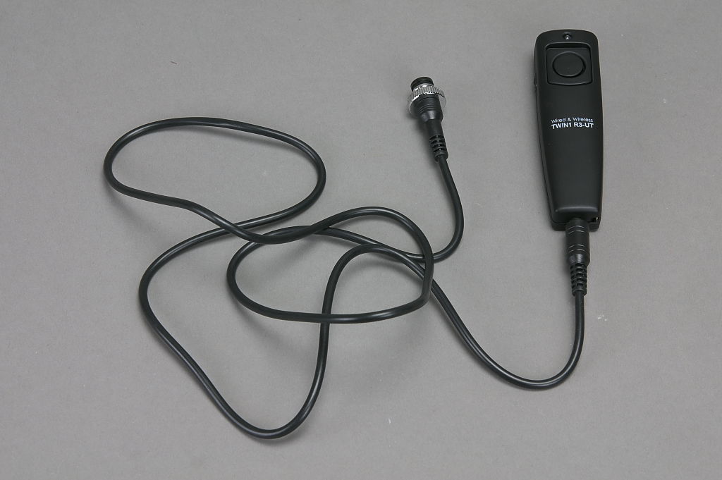 付属のレリーズケーブルを取り付けると,ワイヤードでも使用可能。