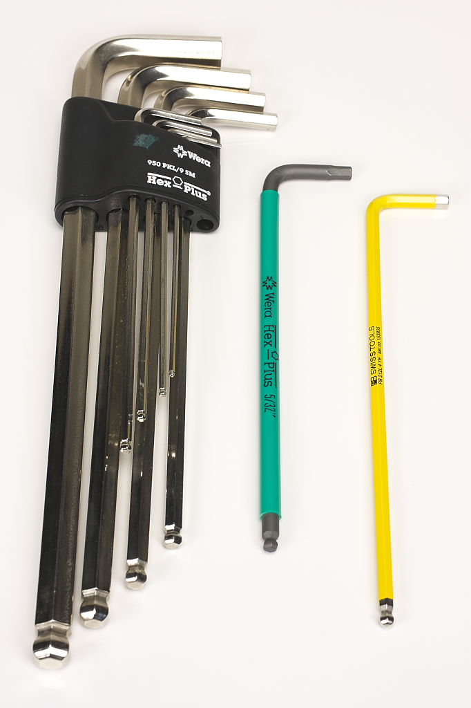 左が普段使っている,Weraの旧型HEXレンチ。ミリですが。