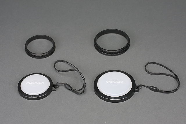 上のリングをフィルタのように装着して,下のレンズキャップをはめ込みますが,あらかじめフィルタ装着してあれば,上のリングはなしでも大丈夫。