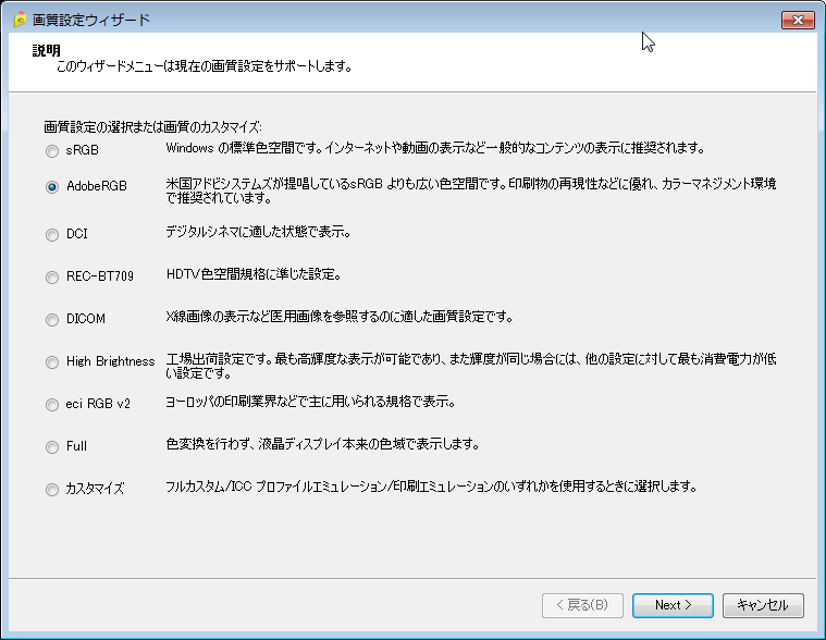それぞれの画面の色域などは個別に指定できるので,親画面はAdobeRGBで,子画面はsRGBで表示することもできます。
