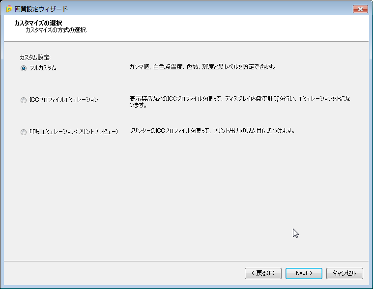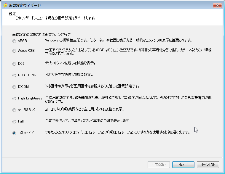 CUSTOMの場合は,細かい設定は後述の「アドバンスドメニュー」で設定します。