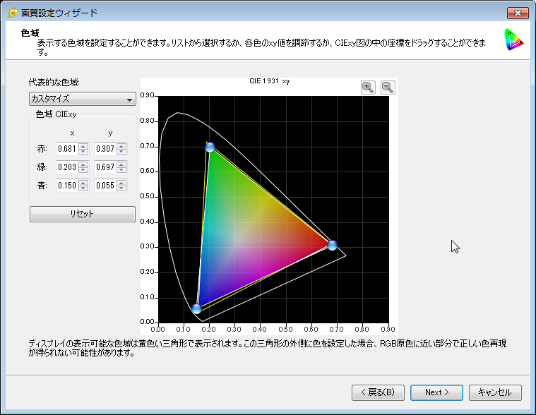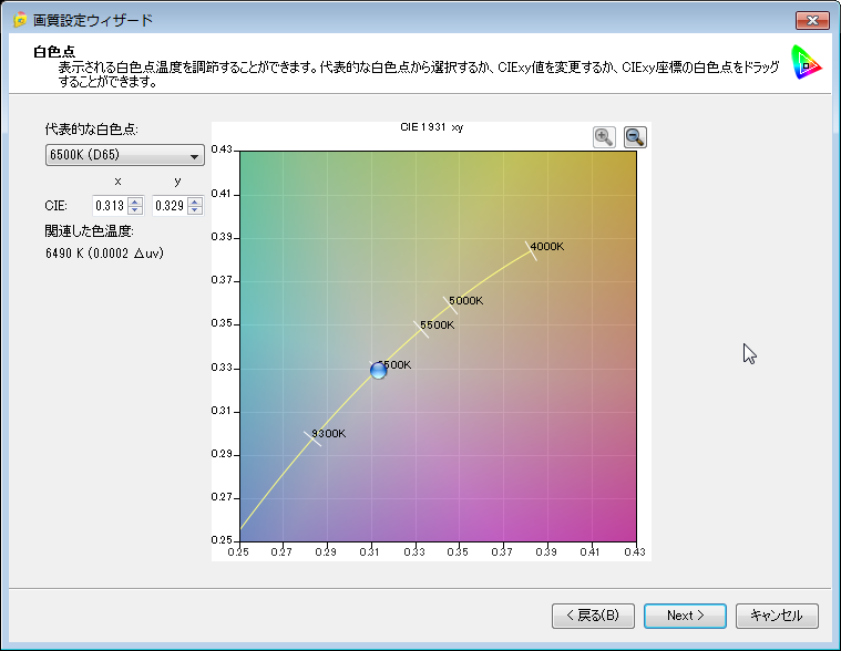 ネイティブ,3000~15000Kの色温度設定のほか,RGBCMYそれぞれの色合い,オフセット,彩度を調整可能。