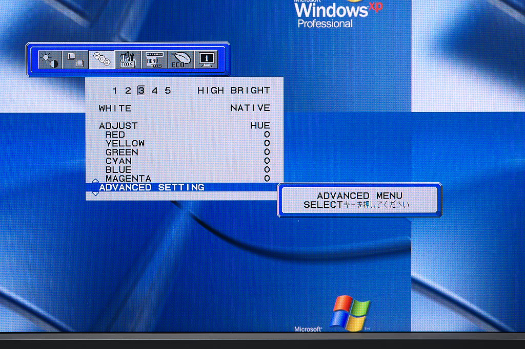 ここからはOSDメニュー『カラー調整』タブの「アドバンスドメニュー」から入れる調整項目。