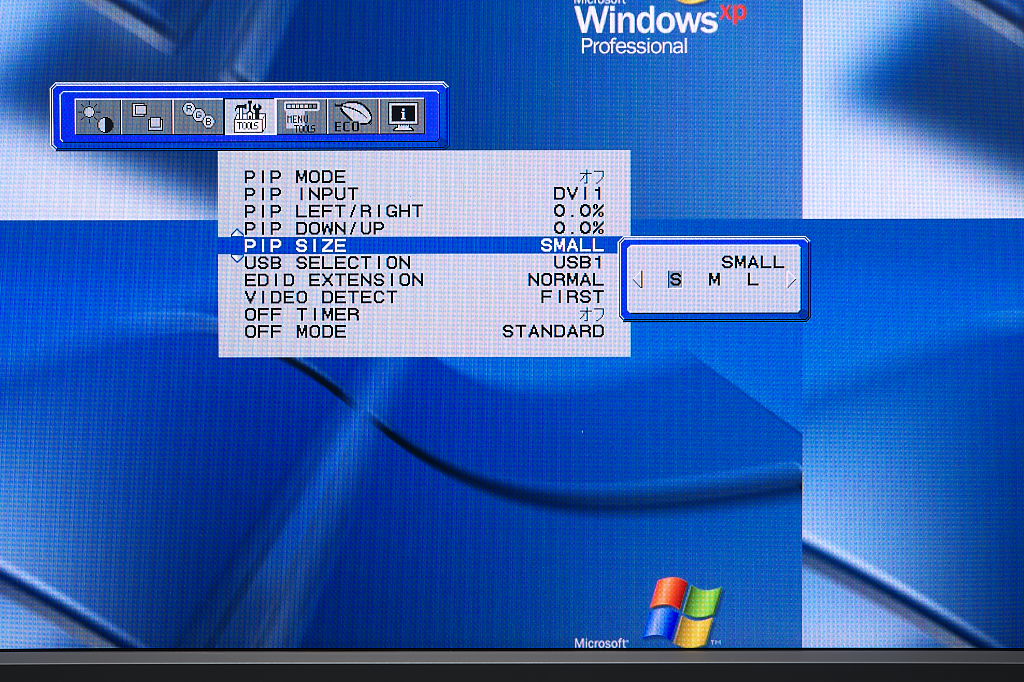 上下ボタンでPIPのON/OFF切り替え,左右ボタンで親画面と子画面の入れ替え。