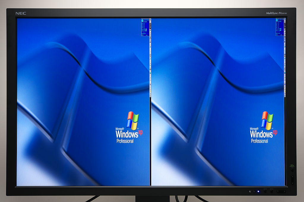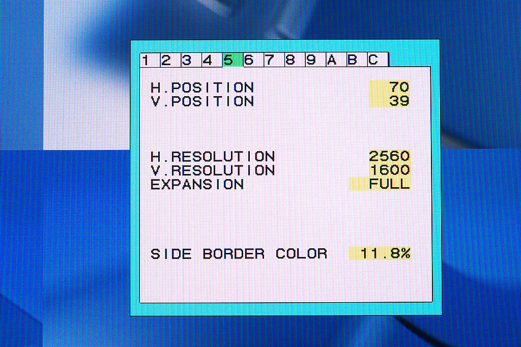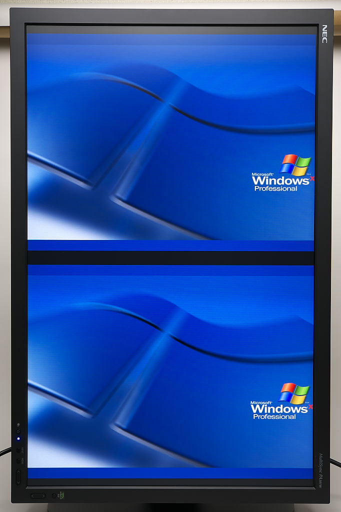 グラフィックボードが対応していれば,解像度1600×1280を2画面でちょうど画面いっぱいになるはずですが,手持ちのグラボはディスプレイのアスペクト比と異なる解像度は指定できませんでした。