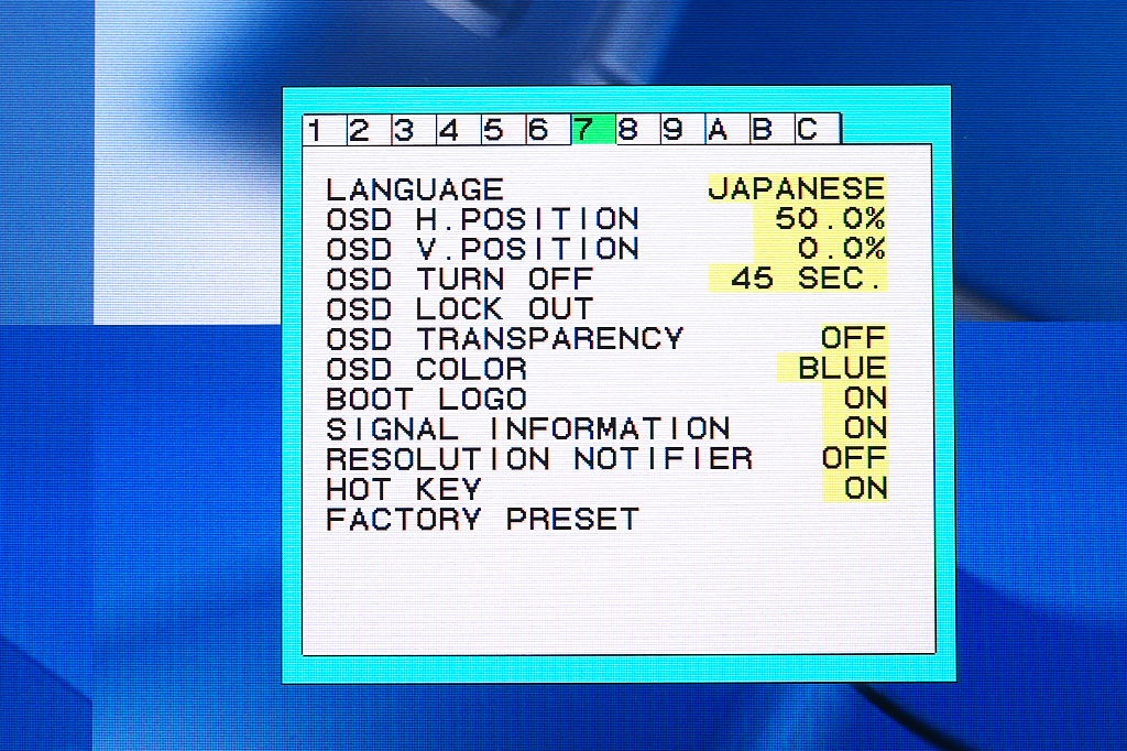 OSDメニューと同一の項目もありますが,さらに細かな設定が可能です。