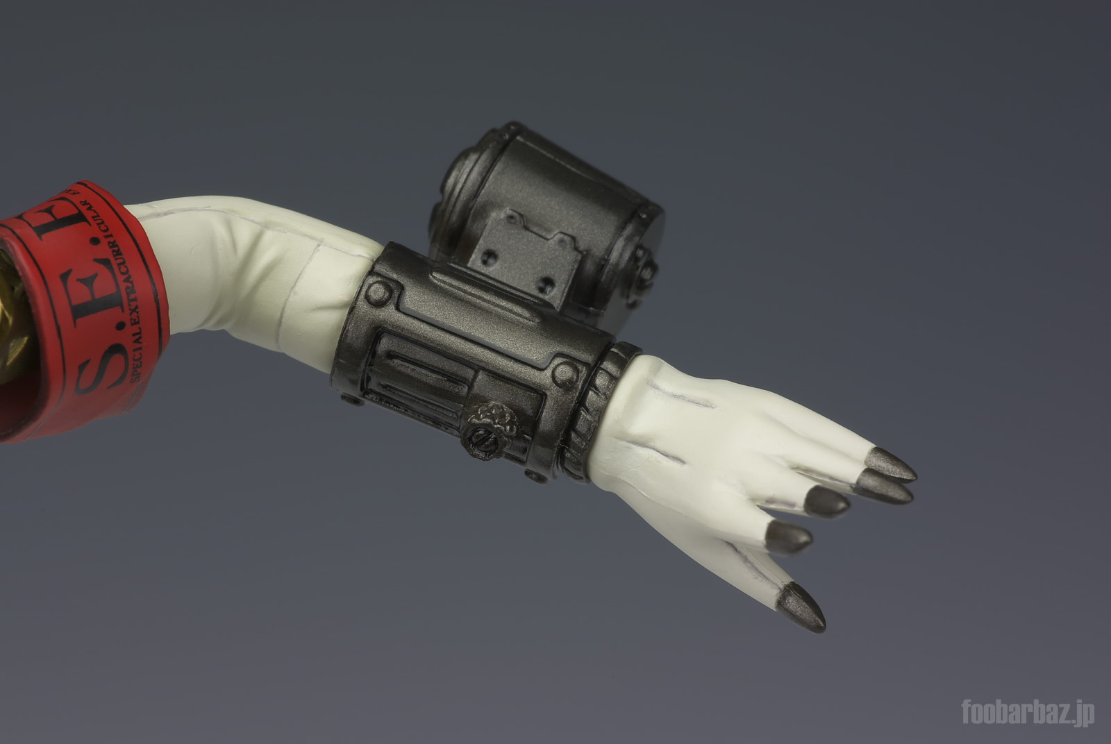 | 身体にぴったりフィットしたボディスーツに,メカニカルな関節部の組み合わせがシュールですな。 スーツのシワ表現,関節部の金属感は実に見事。 | |