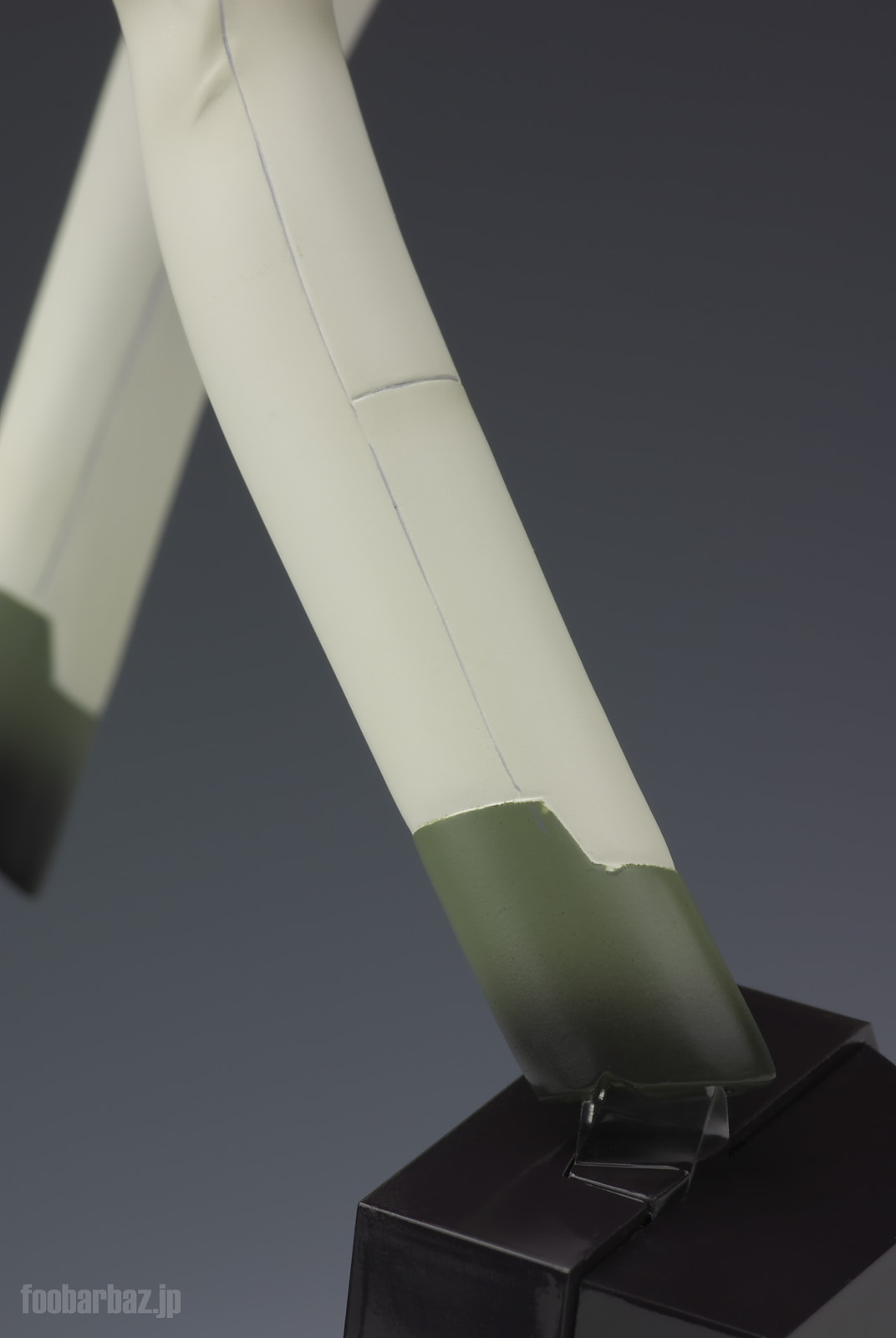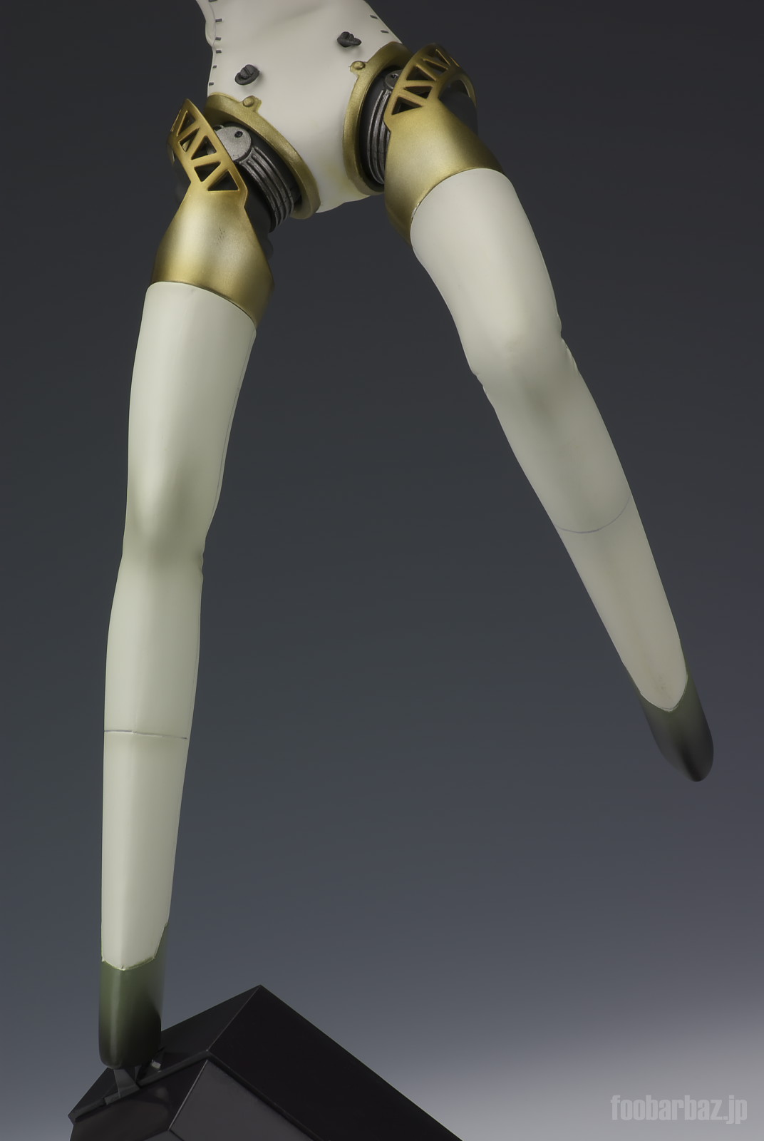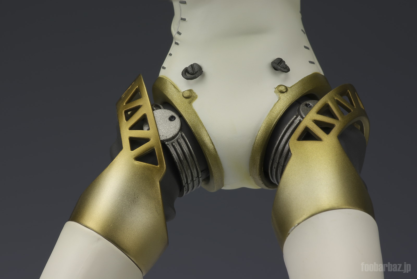 | 脚部の関節。クロームの可動リングに内部構造を包むゴム製と思われるカバー,それらを保護するトラス模様のガード。それぞれ質感を変えて塗装されています。 |