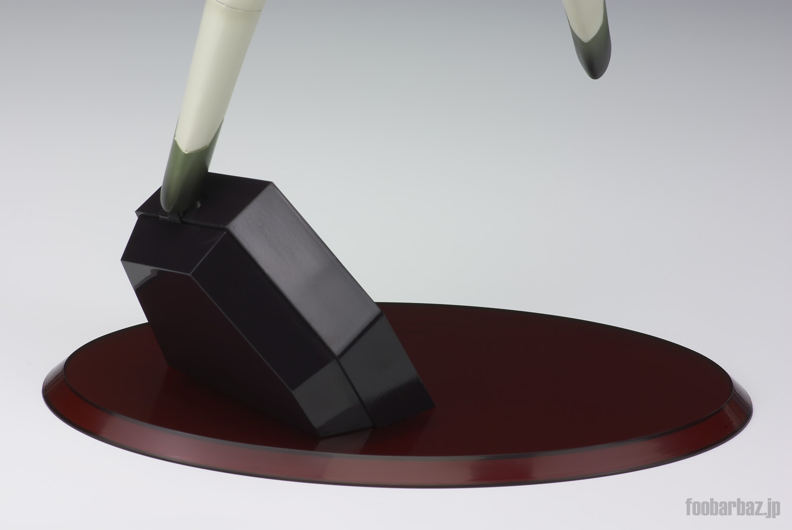 | 足元は蹄のような形状。ベースから伸びた凸部に差し込んで固定。この一点で全重量を支えています。 |