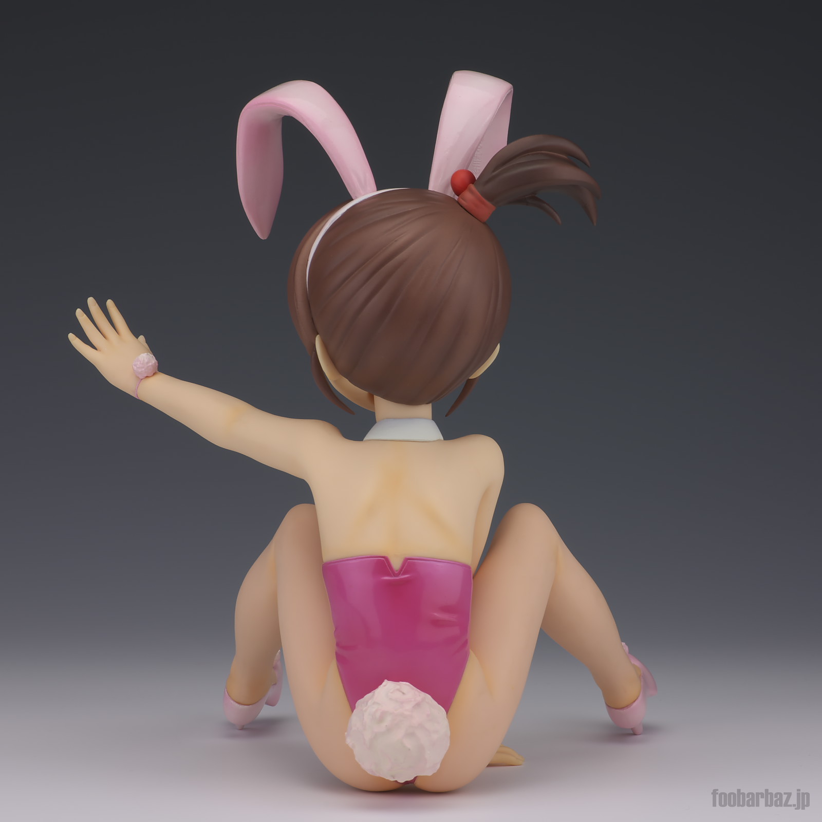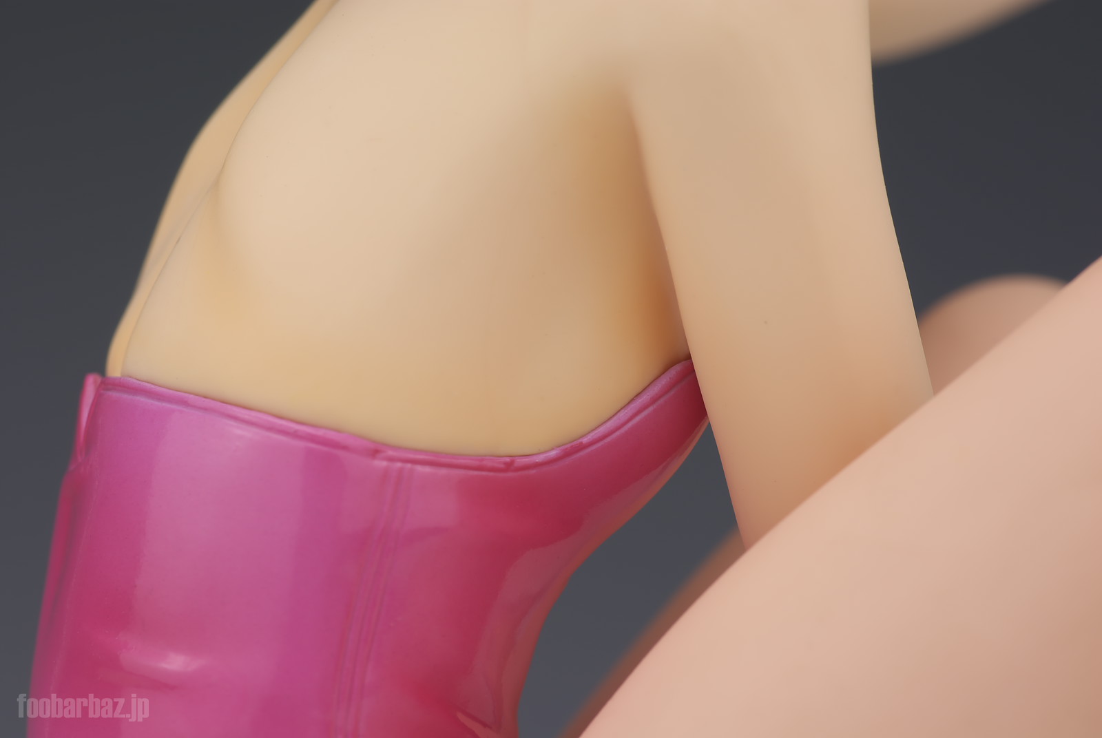 | バニースーツは美しい艶のあるピンクのパール塗装。 折れそうなくらい細っこい身体つきとのギャップがなんとも(^^; 大きく開いた背中もきゃしゃな感じがしますね。 | |