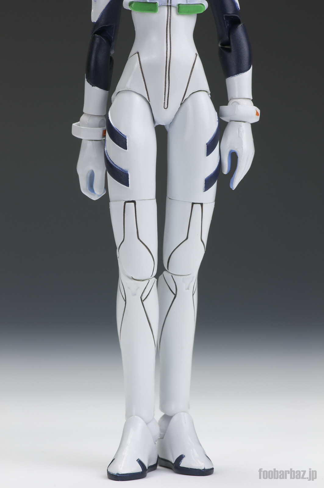 | おなじみのプラグスーツ姿。造形や塗装も細かいところまで良くできています。 手首にはリボ球隠しの六角形のパーツを挟み込みます。 | |