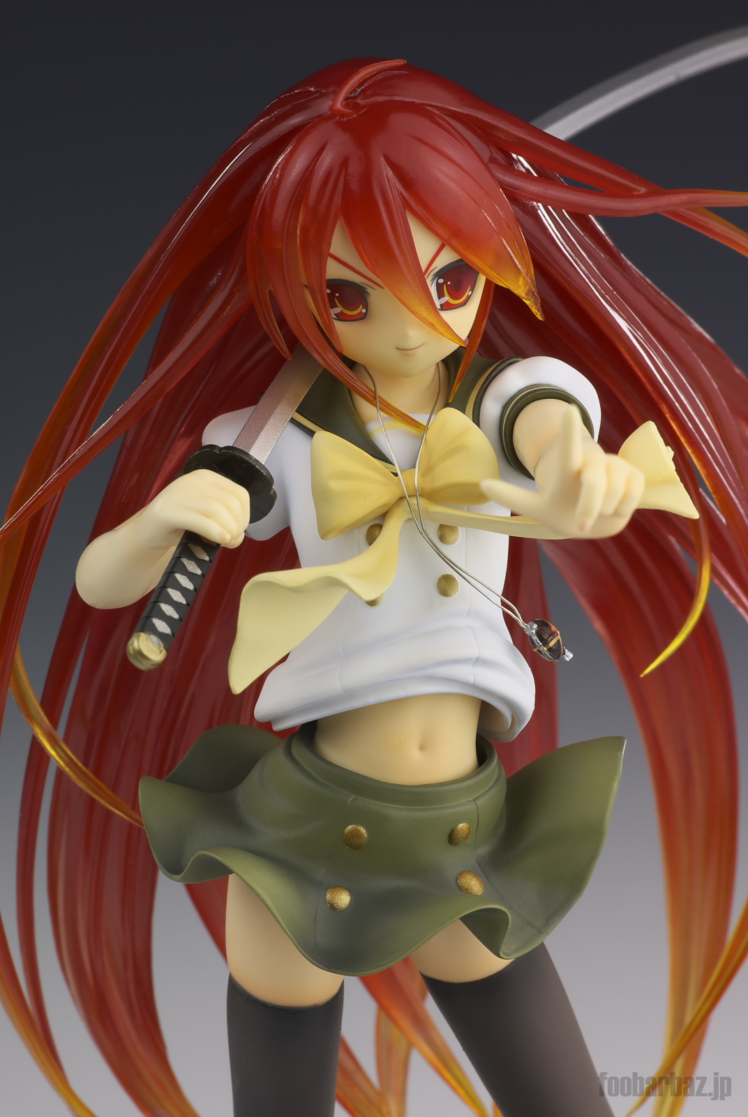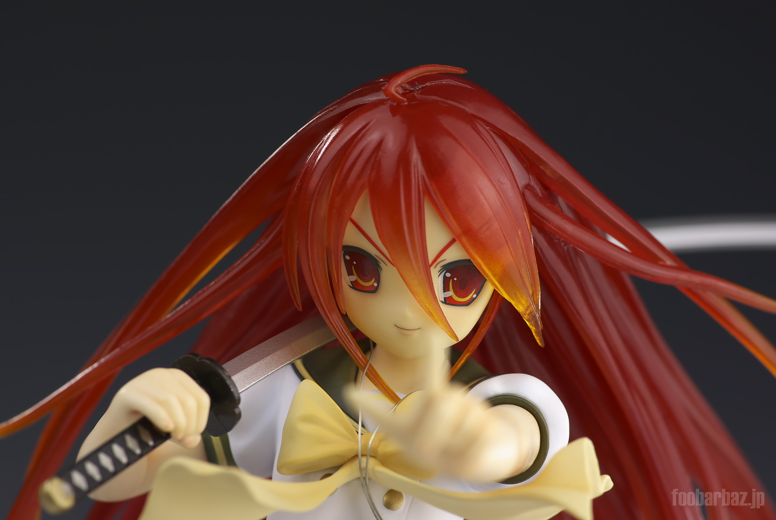 人気キャラなだけに,今までも各メーカより様々なシチュエーションでの立体化がされてきたシャナ。今回のMAXはオーソドックスな制服の立ち姿で,炎髪はクリア素材で表現という手法を採ってきました。