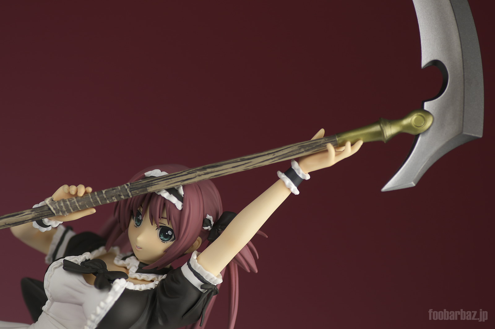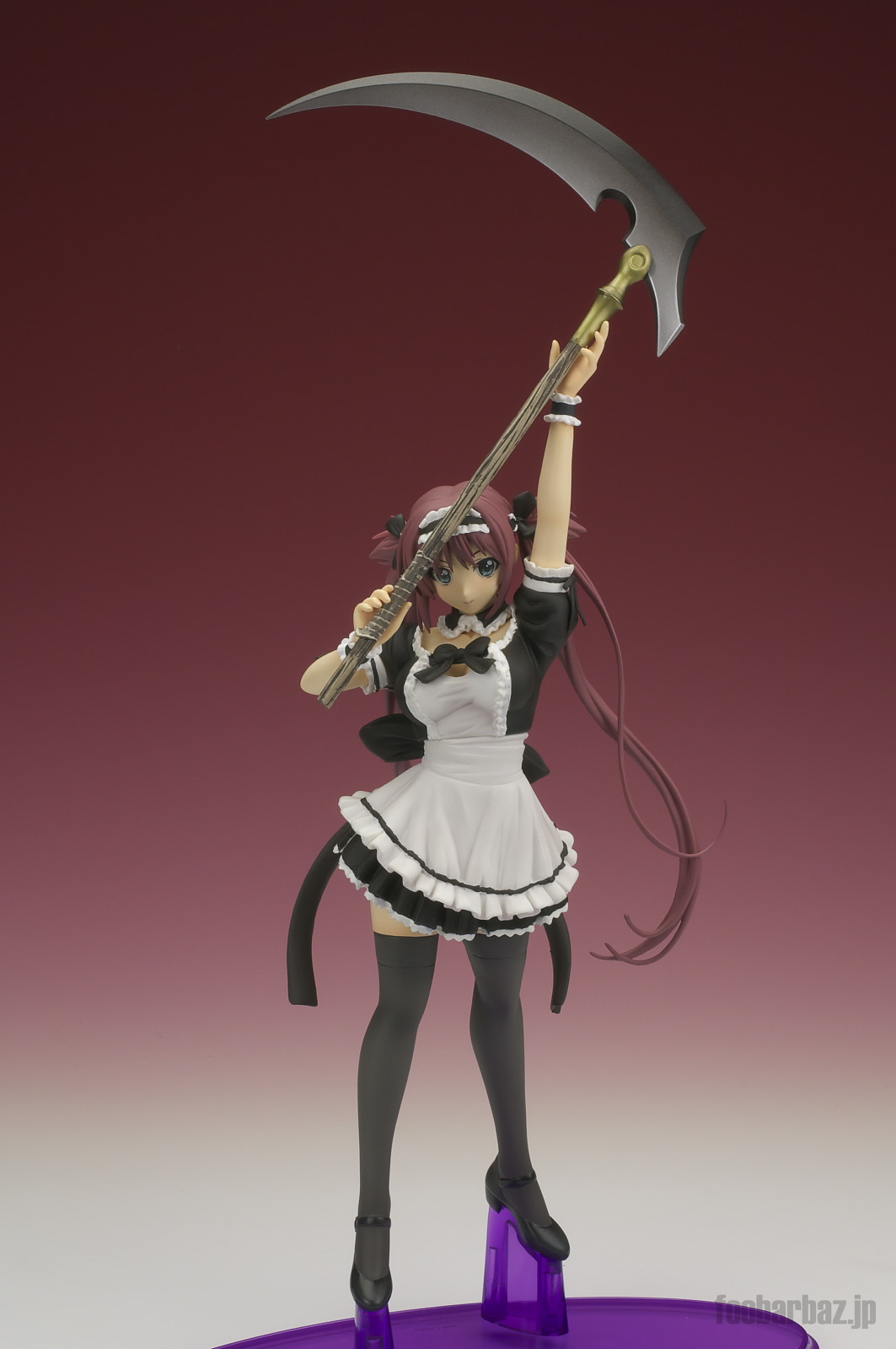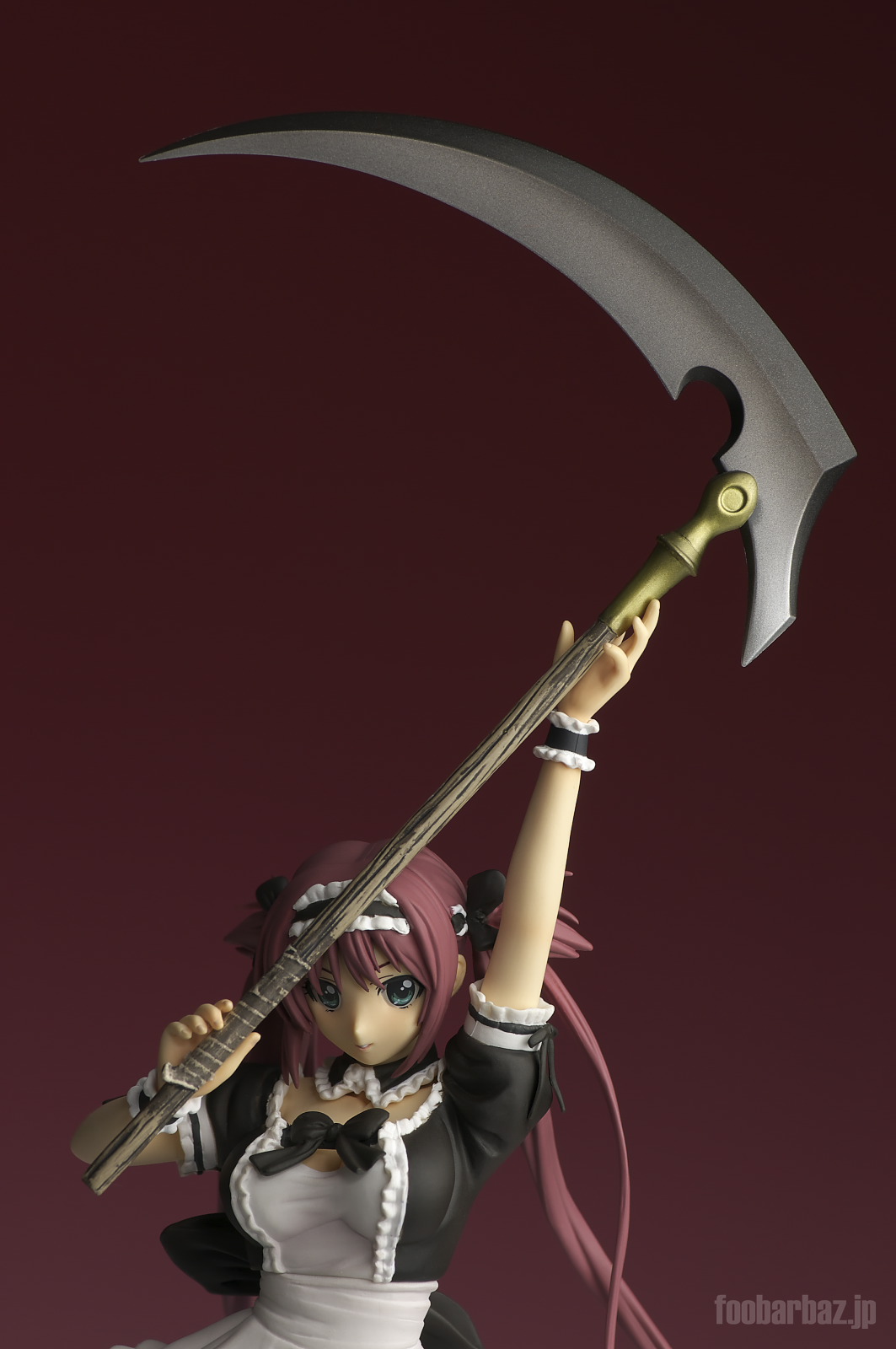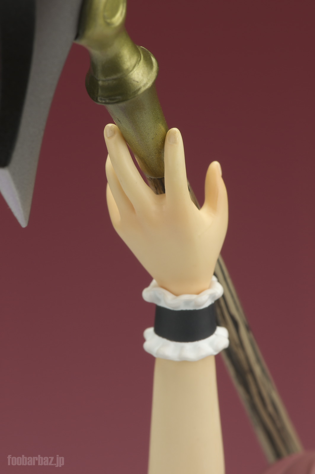 | 鈍い光を放つ,巨大なデスサイズ。 こいつが難物で,どうやってもまともに持たせられませんでした。そもそも手の角度が合っていないという(^^; 仕方がないので撮影時はワックスで固定してあります。 | |