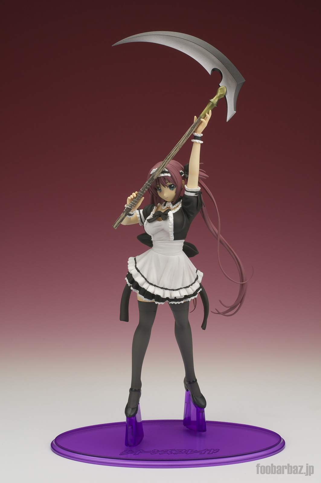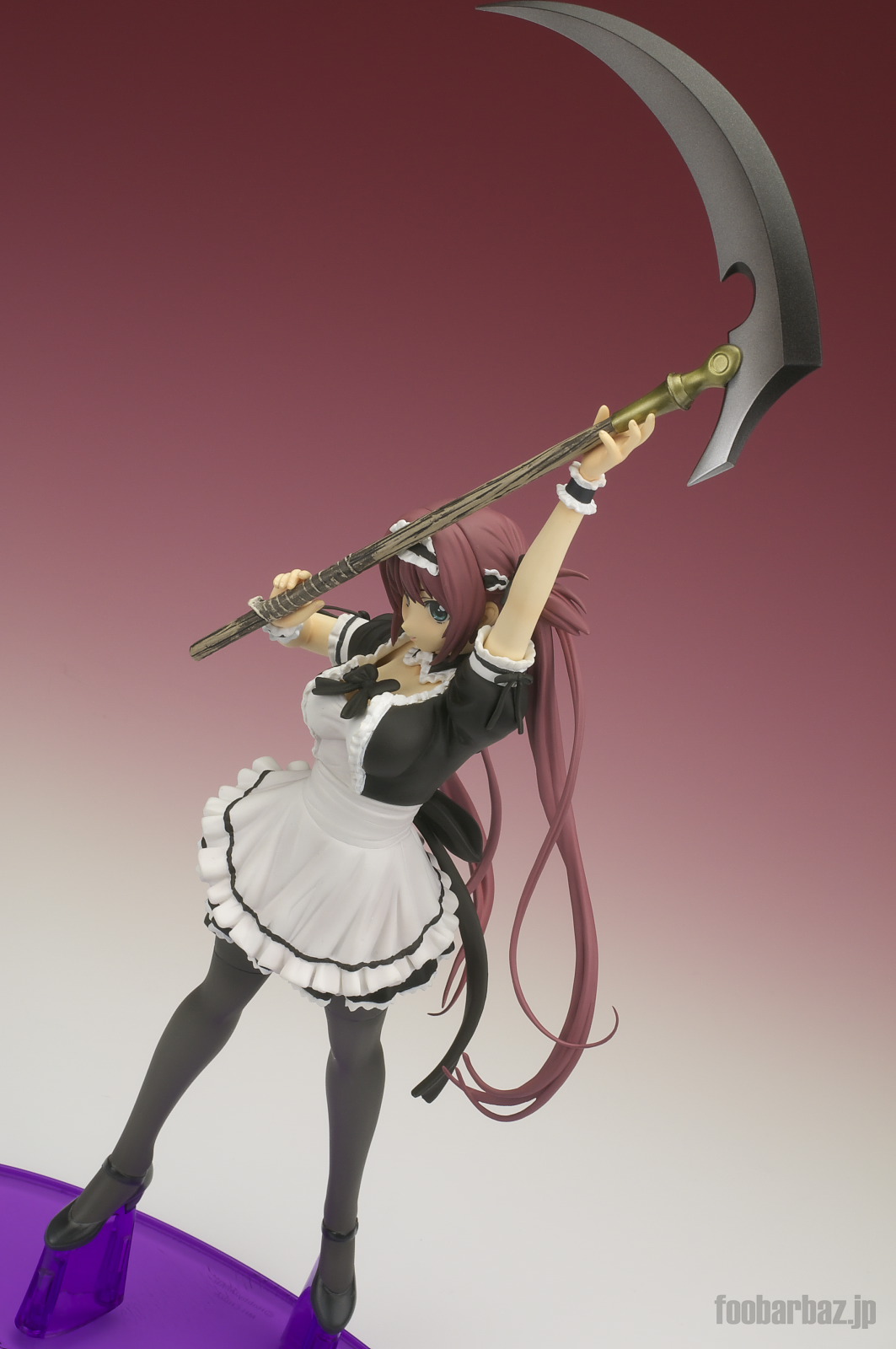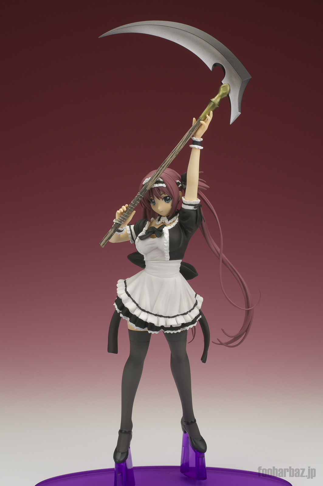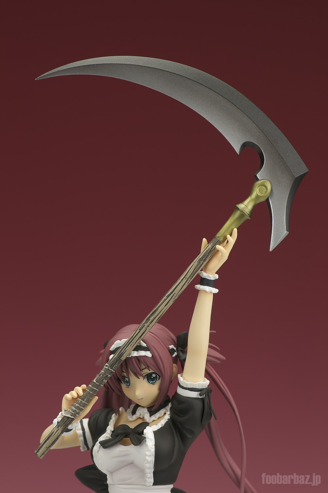 | 鈍い光を放つ,巨大なデスサイズ。 こいつが難物で,どうやってもまともに持たせられませんでした。そもそも手の角度が合っていないという(^^; 仕方がないので撮影時はワックスで固定してあります。 | |