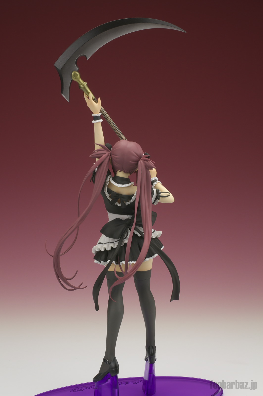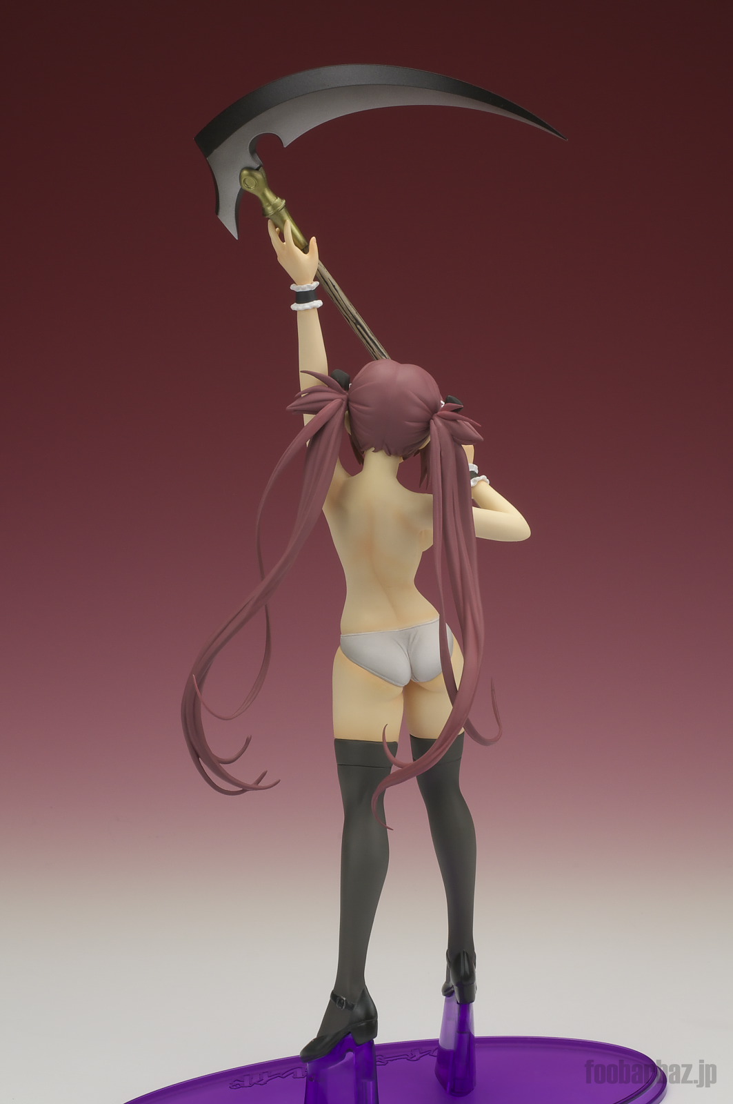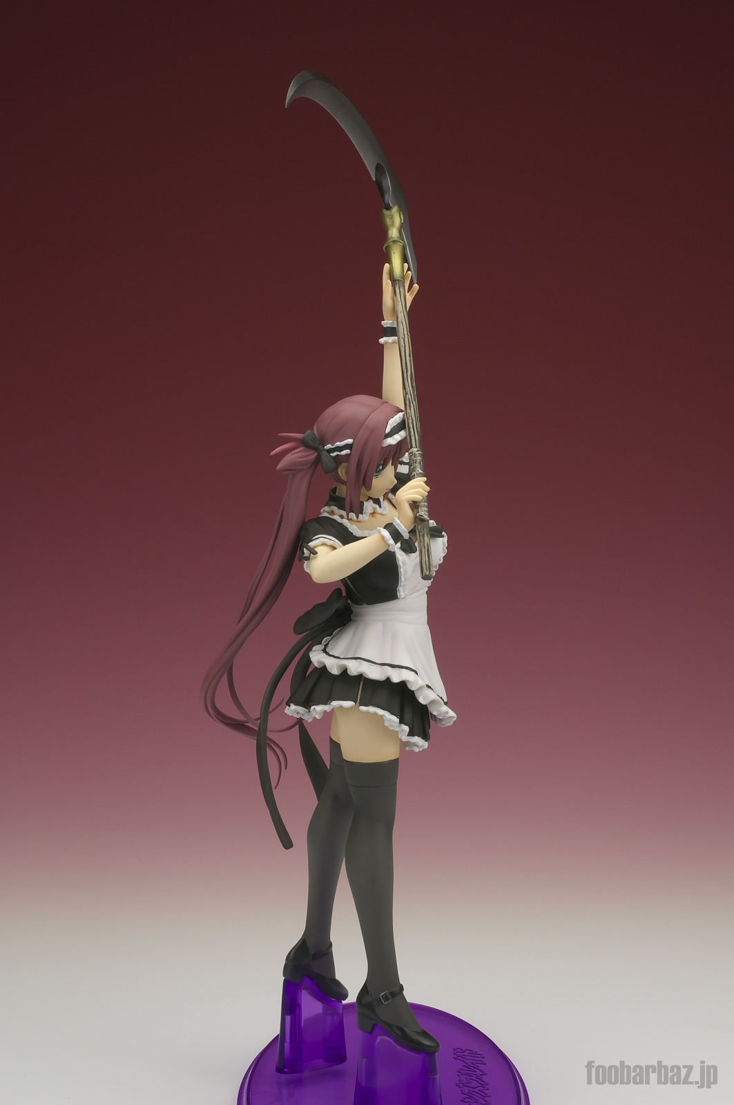 | 全体前後2方向。台座がちょっと変わっていて,下駄を履かせたような感じで固定されます。 構えたデスサイズのせいもあって,かなり高さをとります。 | |