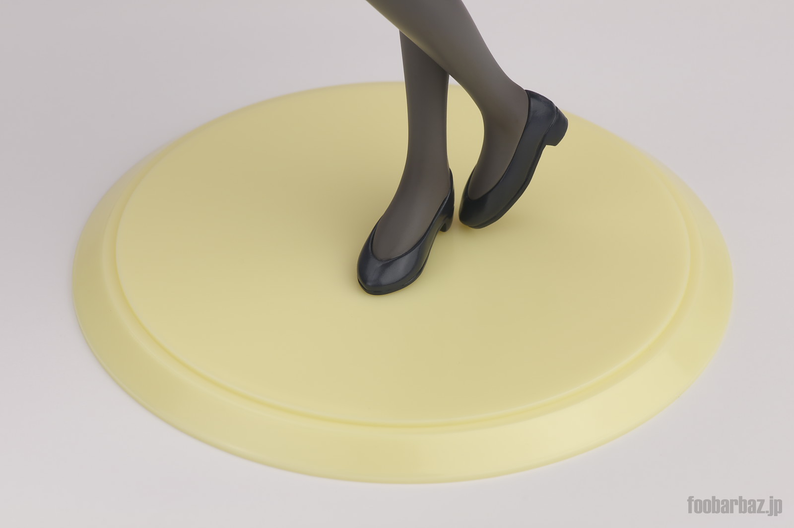 | 足元はフォーマルな黒のパンプス。台座はイエローのシンプルきわまりないものです。 |