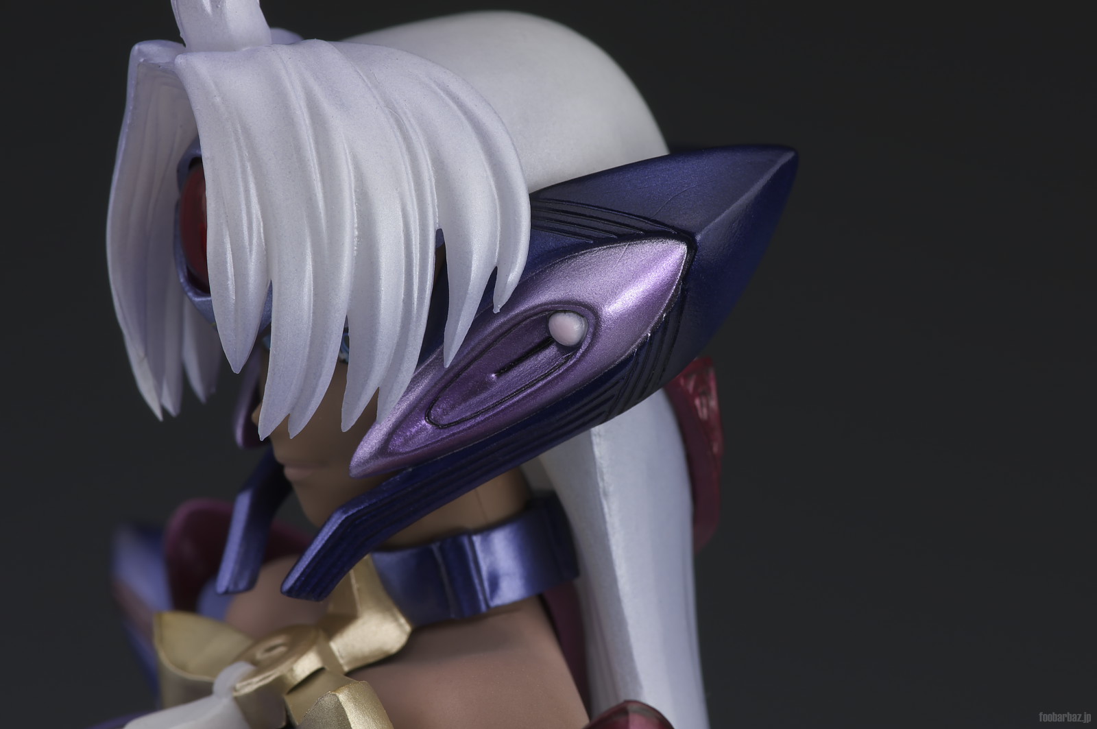 | 各部造形も大変細かく,見応えがあります。 ただ,髪の毛とバイザーが邪魔で,上から見ると目が隠れてしまいます。 | |