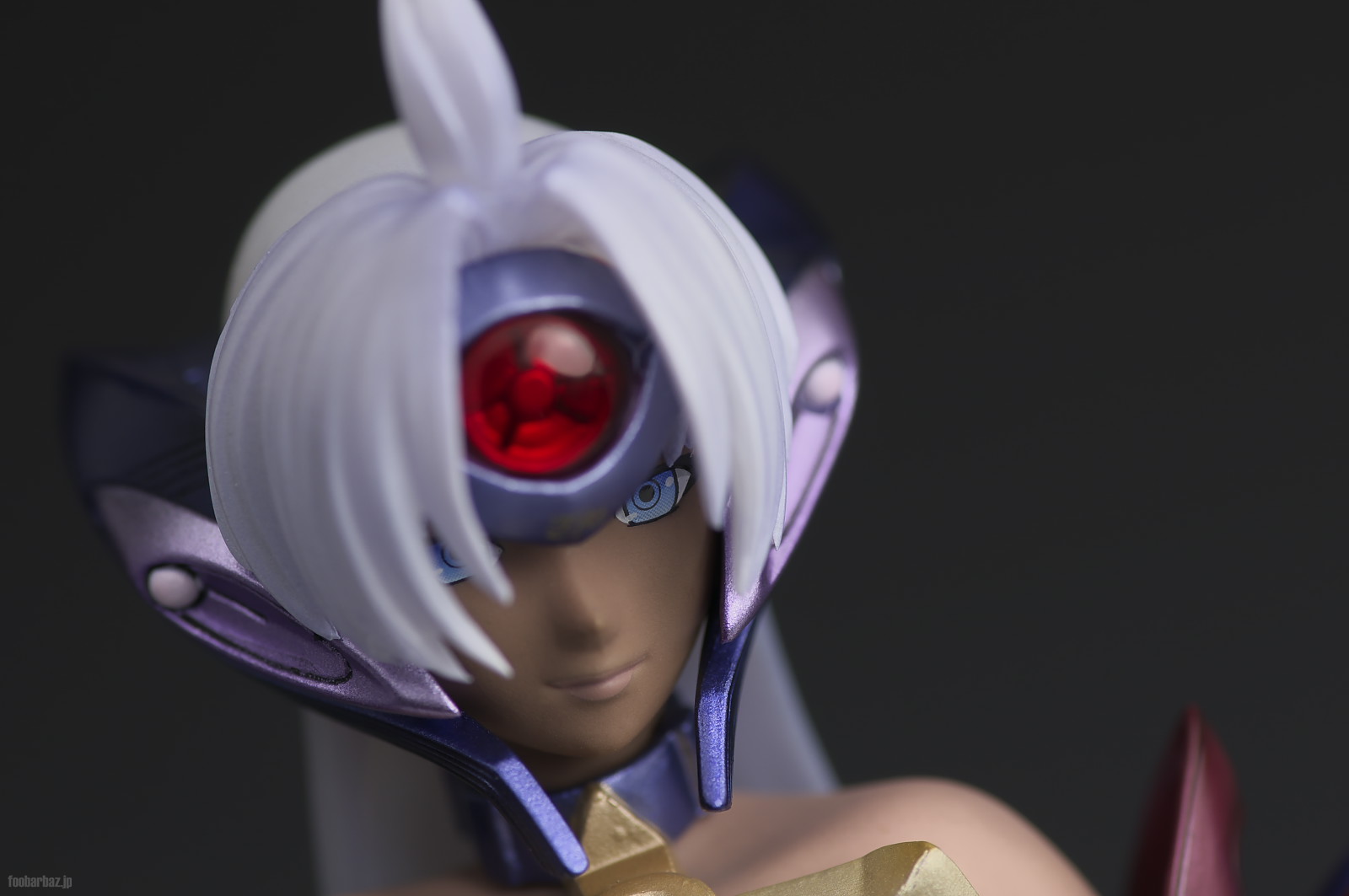 | 薄く笑みを浮かべた,迫力ある表情。 褐色の肌にひときわ目立つブルーの眼が素晴らしいです。 髪の毛とヘッドセットが突き出しているため,顔が暗くなりがちなのが残念。 | |