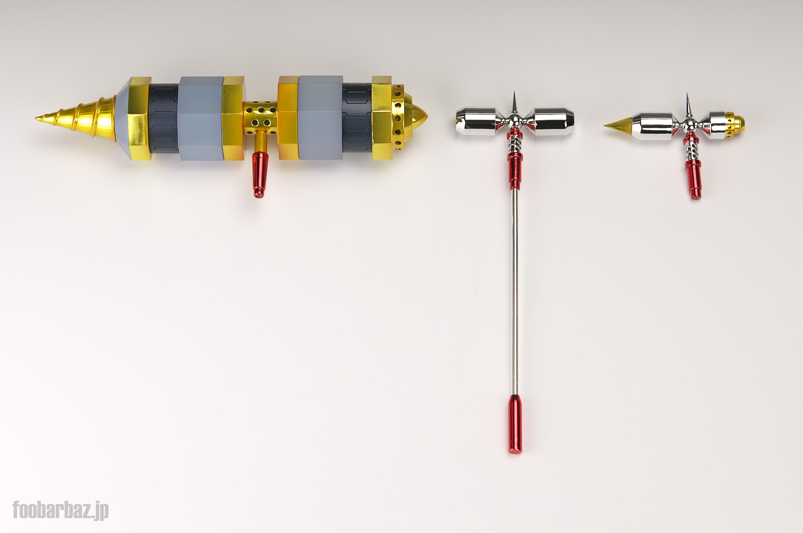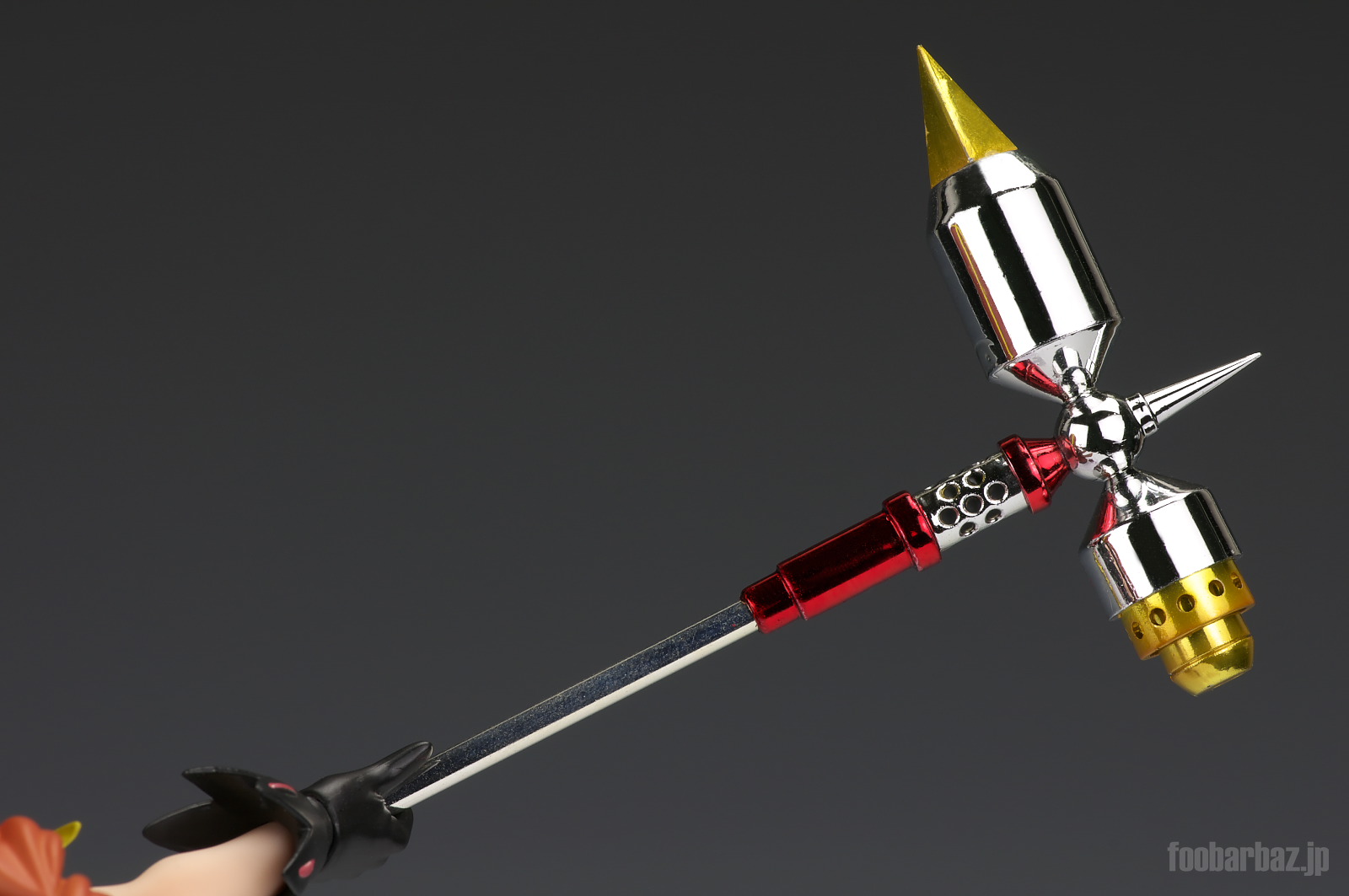 | 頼りになる相棒,グラーフアイゼン。 ハンマーフォルム,ラケーテンフォルム,ツェアシュテールングスフォルムの3通りが再現可能。 メッキパーツがカッコイイのですが,表面はあまりきれいではありません(^^; 柄は金属製で,へたれる心配はありません。 |