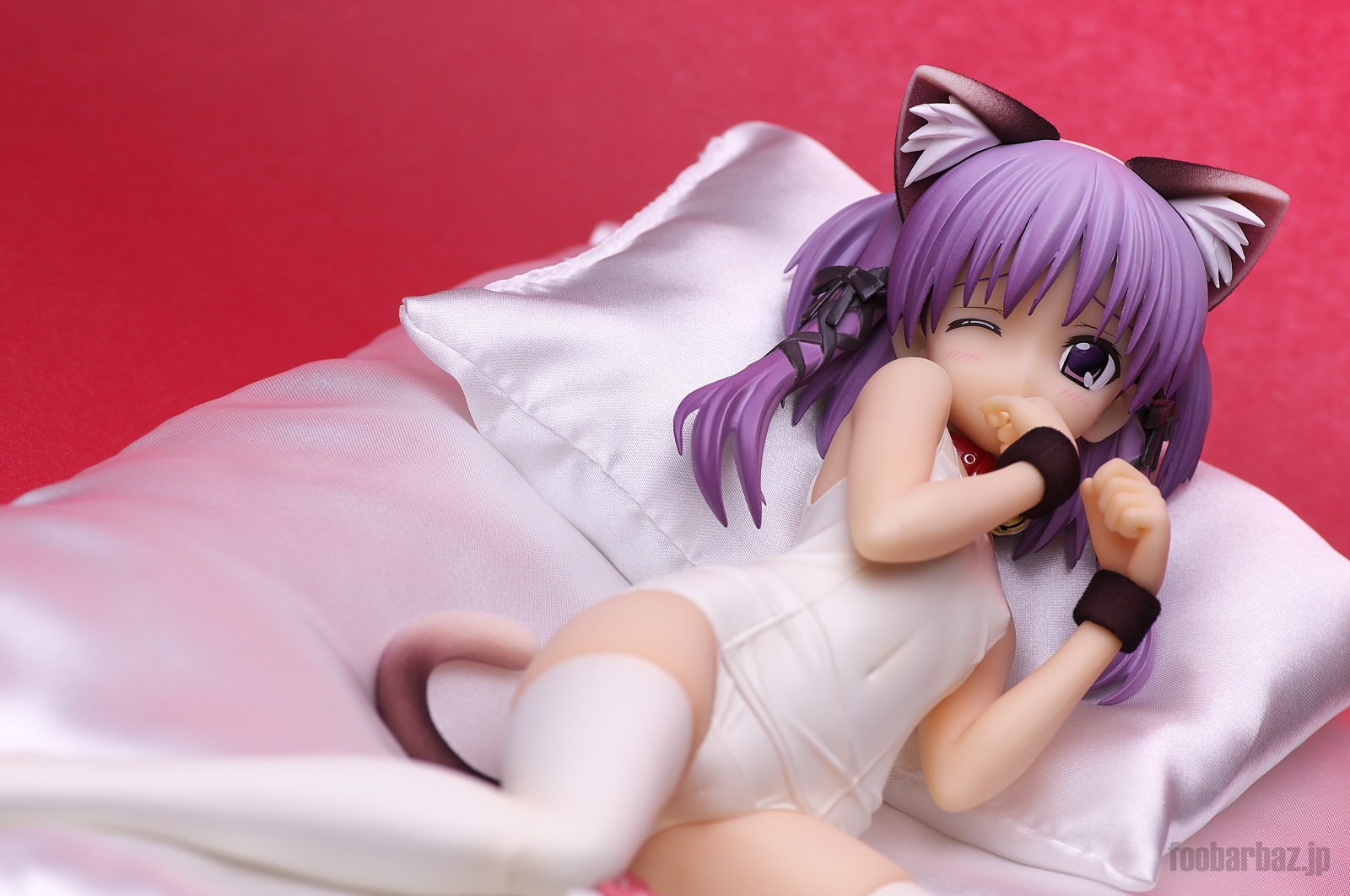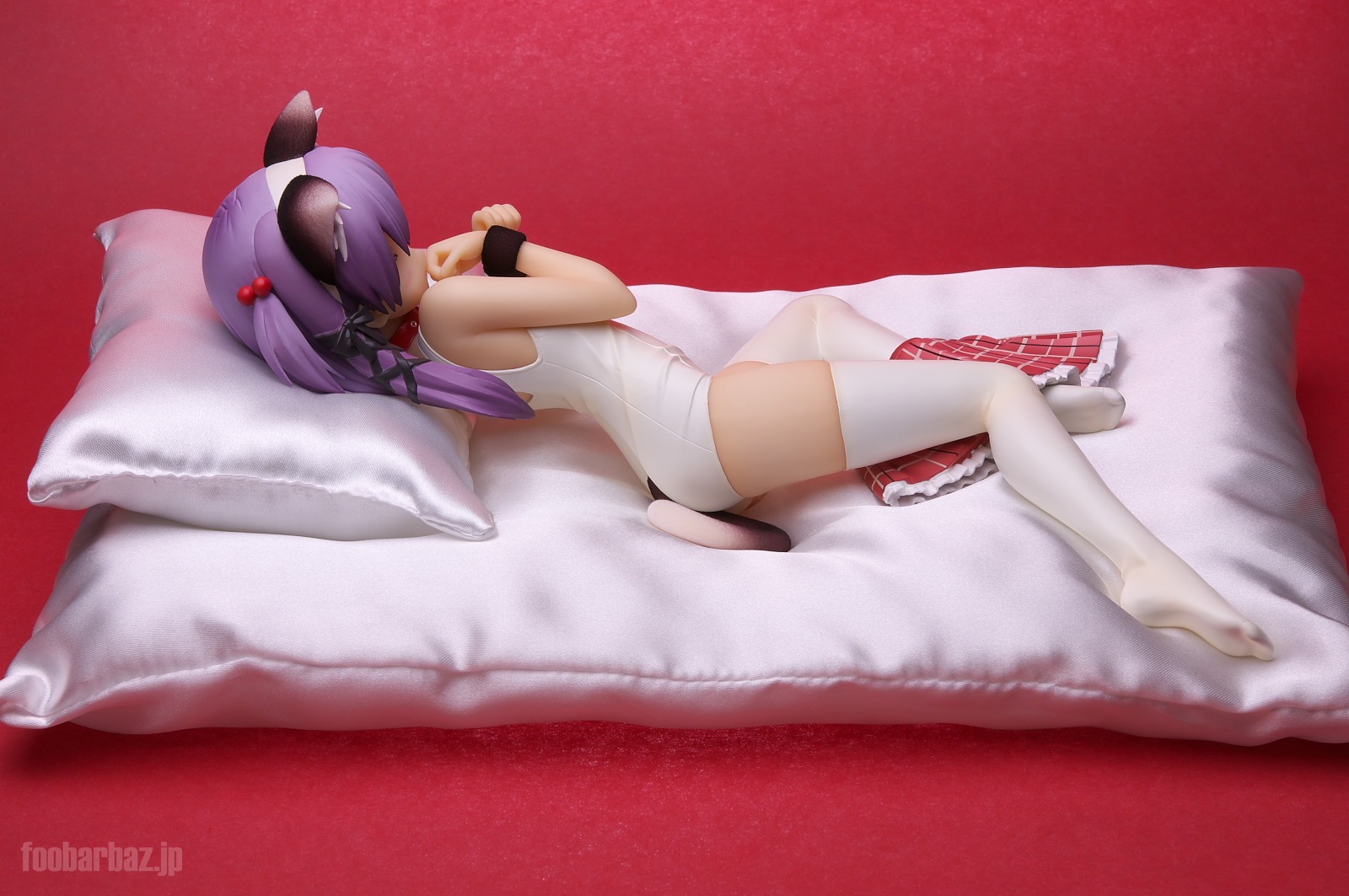 | 6方向。破壊力バツグンです(^^; ネコミミしっぽ付きでスク水でスカート脱ぎかけ,でもニーソはしっかり穿いて寝そべるという,素晴らしいシチュエーションを再現しています(^^; |