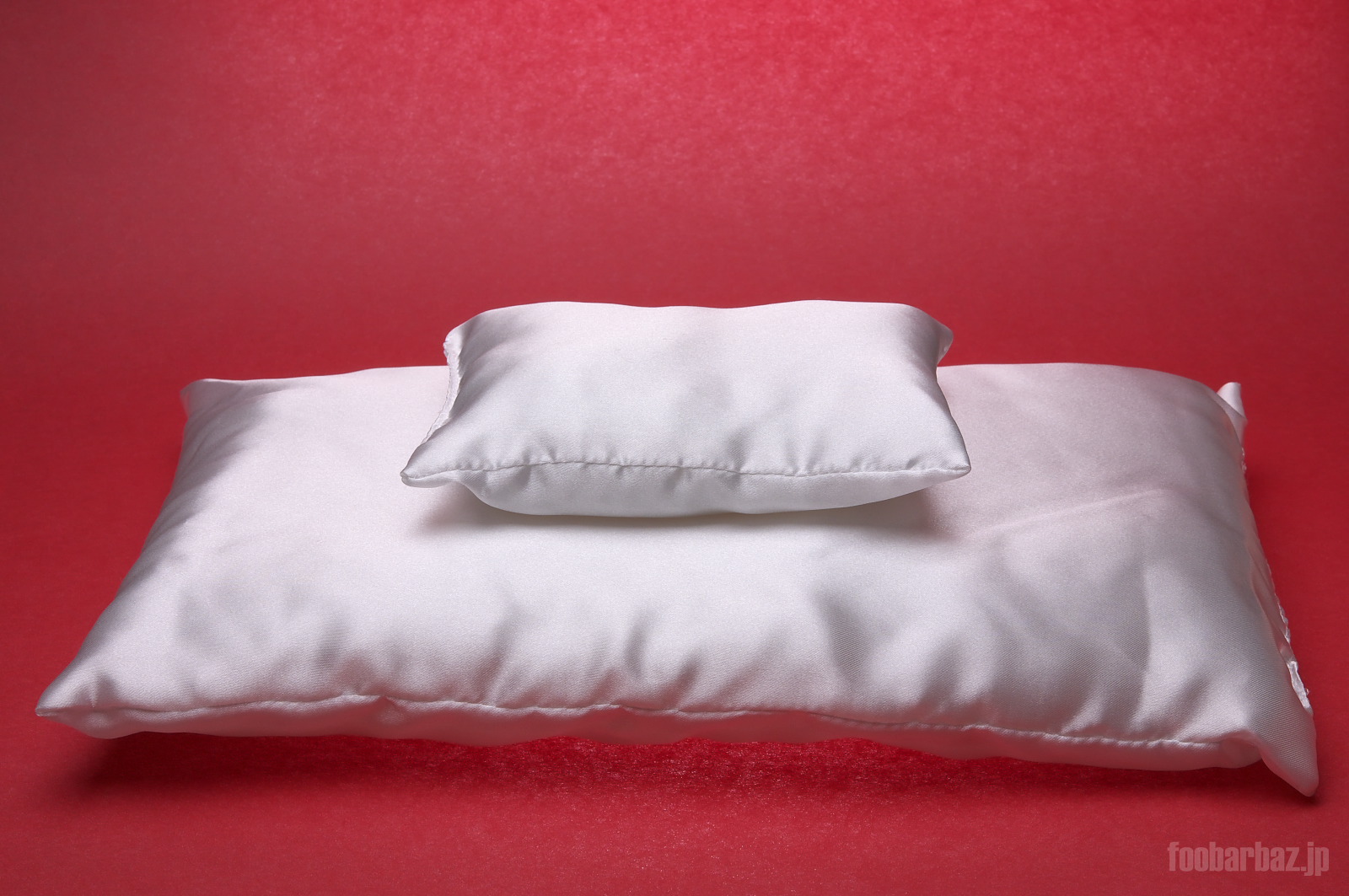 | 台座代わりのクッション2つ。 サテン地の美しい光沢感があります。 |