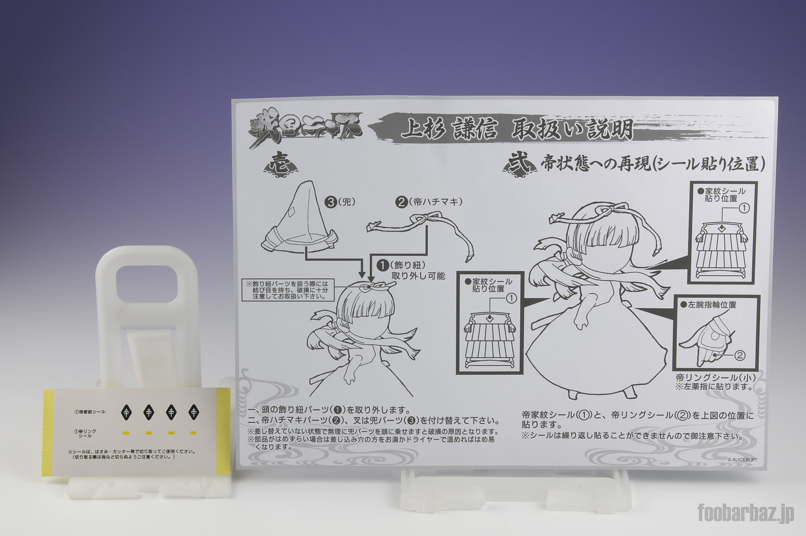 | 帝Ver.再現の説明書と,そのための付属シール。 付属シールは切れ目が入っていないため,自分で切り抜いて貼り付ける必要があります。 |