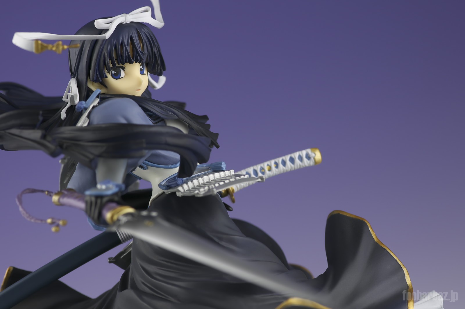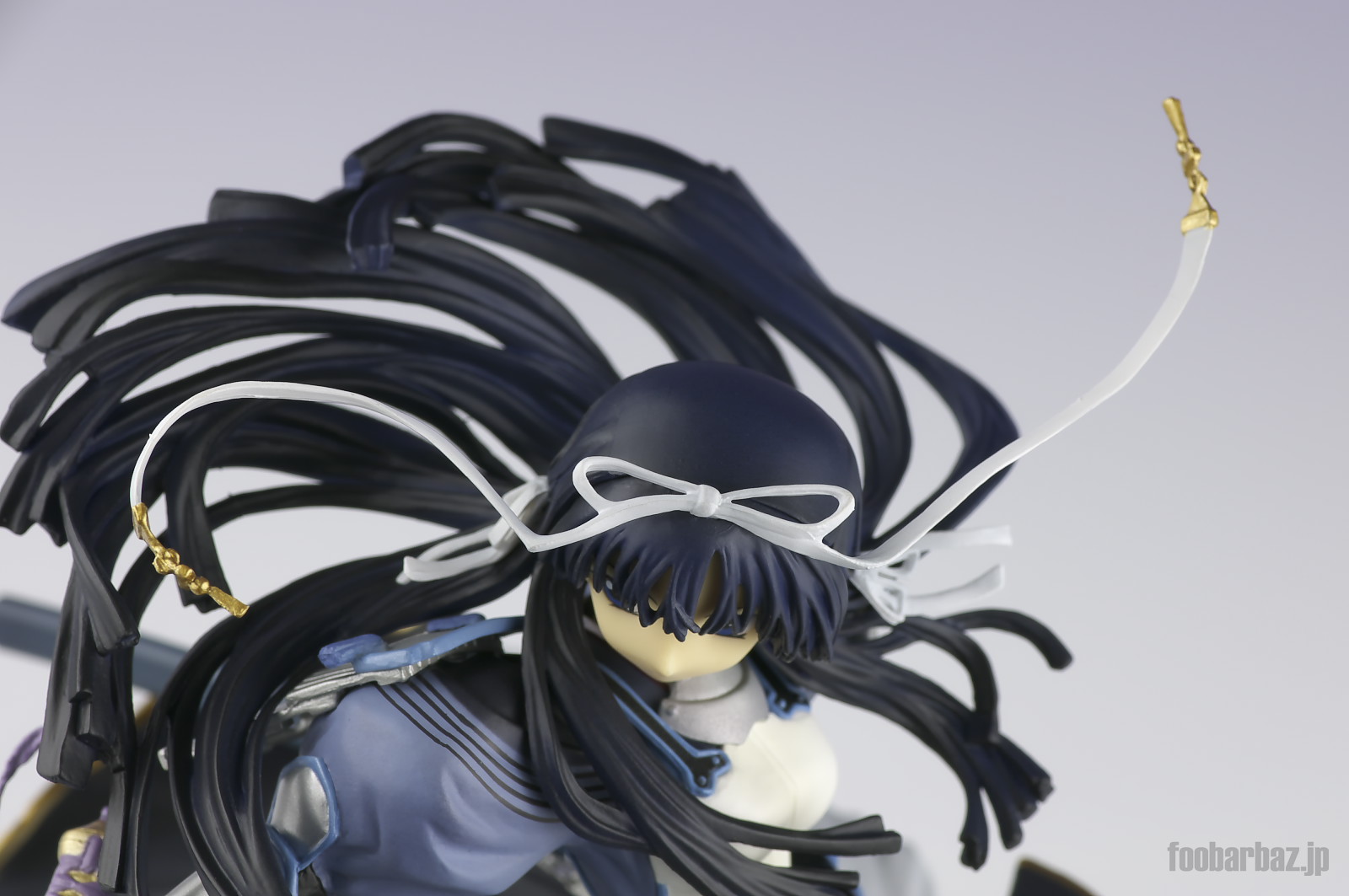 | 頭部のリボンは取り外して,後述の兜やハチマキに換装できます。 造形はダルいですが,大きくうねった髪の毛は,動きが感じられていいです。 |