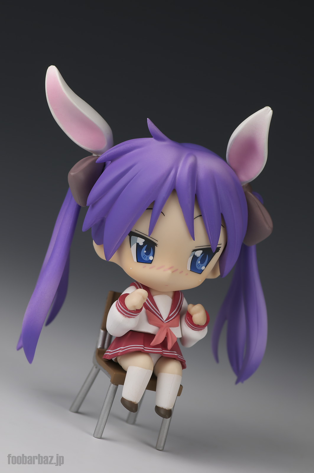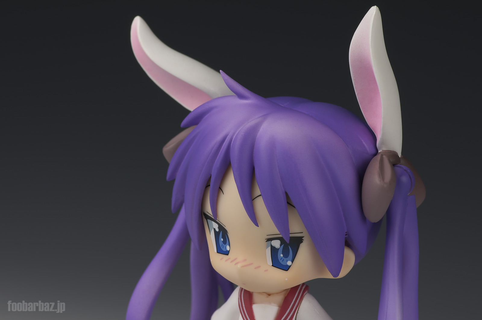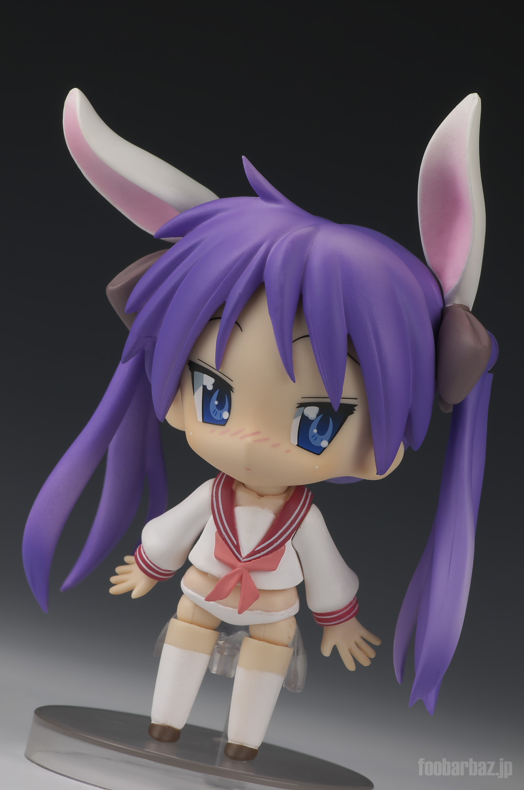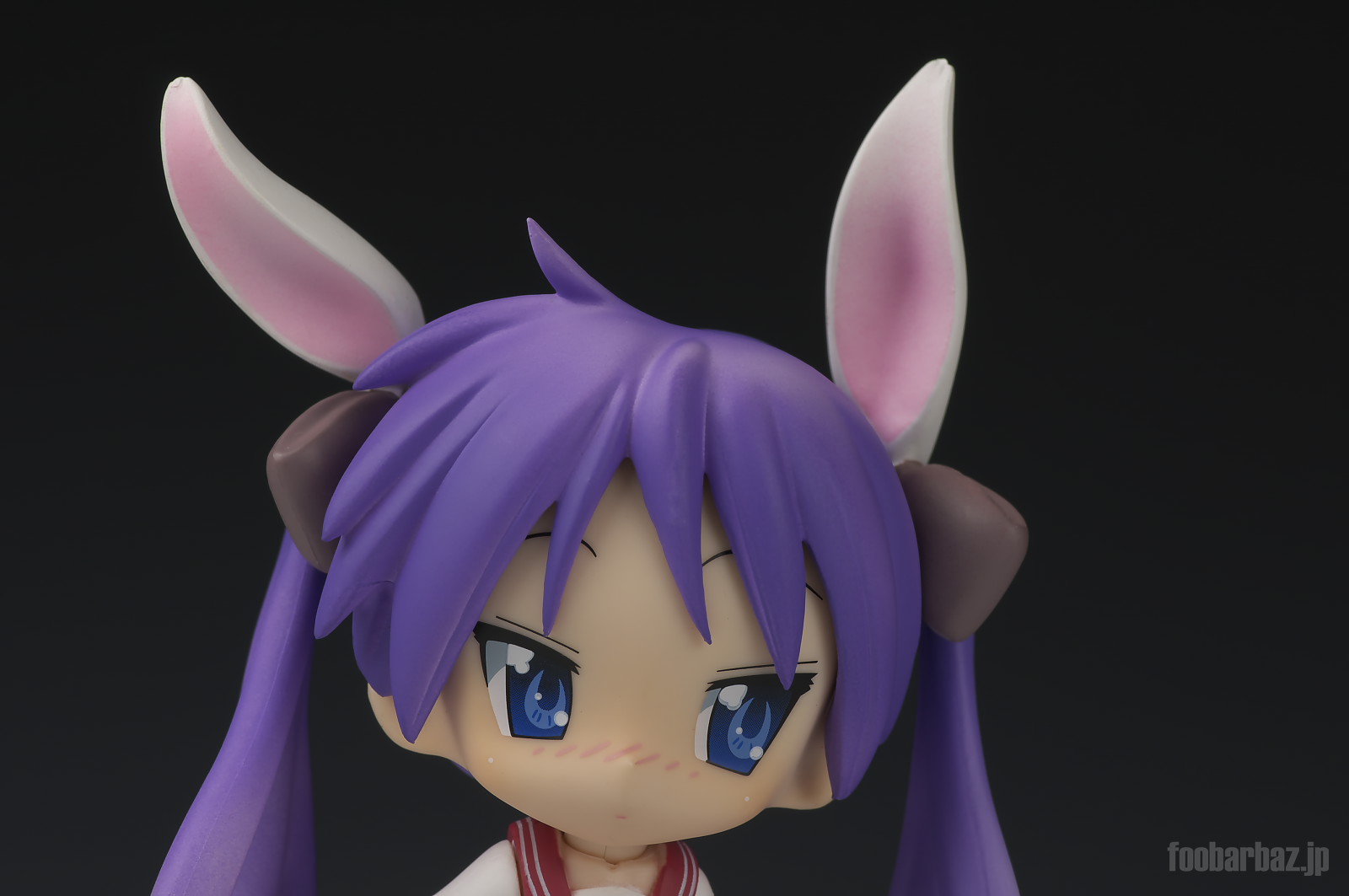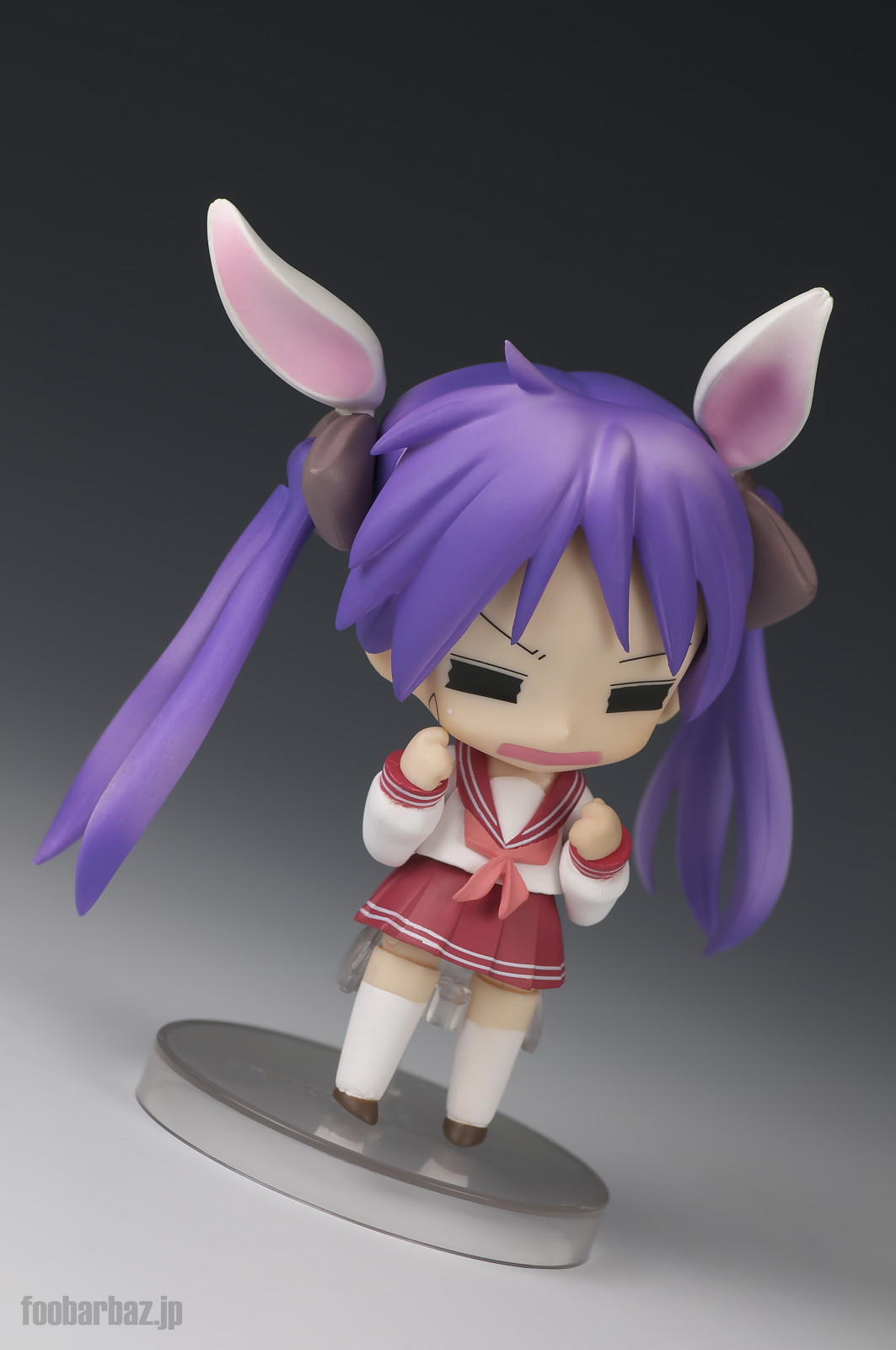 3種類のバージョンは共通パーツのほかにそれぞれ特有の顔とパーツが付属し,コンプVer.はこなたはねこみみしっぽの笑顔,かがみはうさみみしっぽのデレ顔が付属しています。