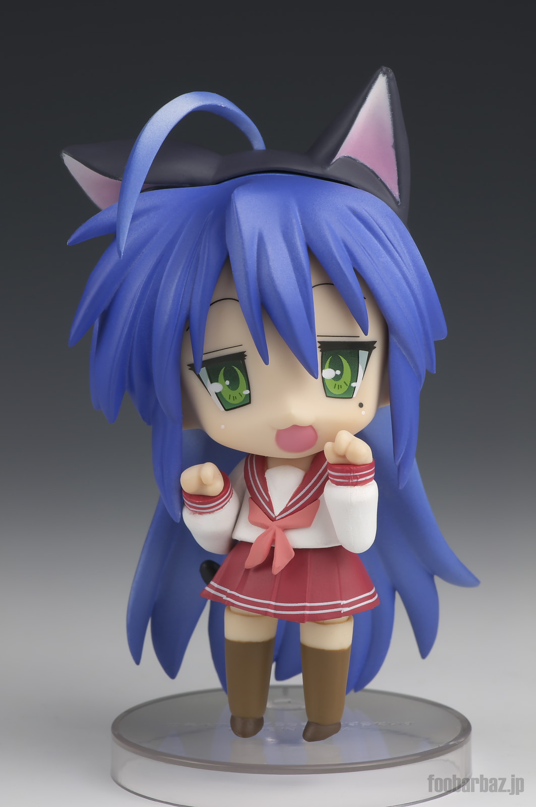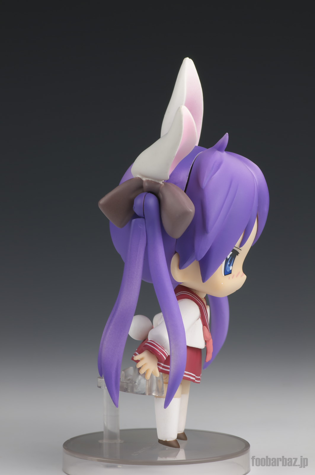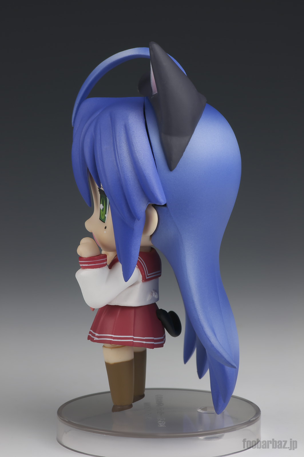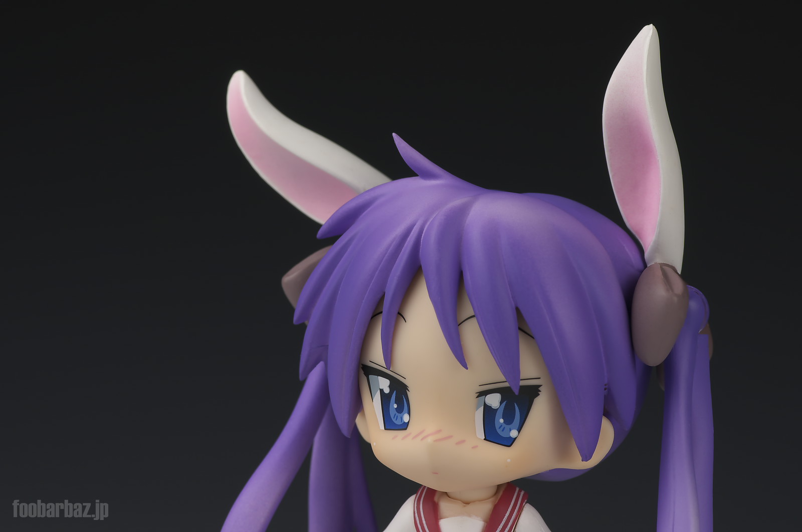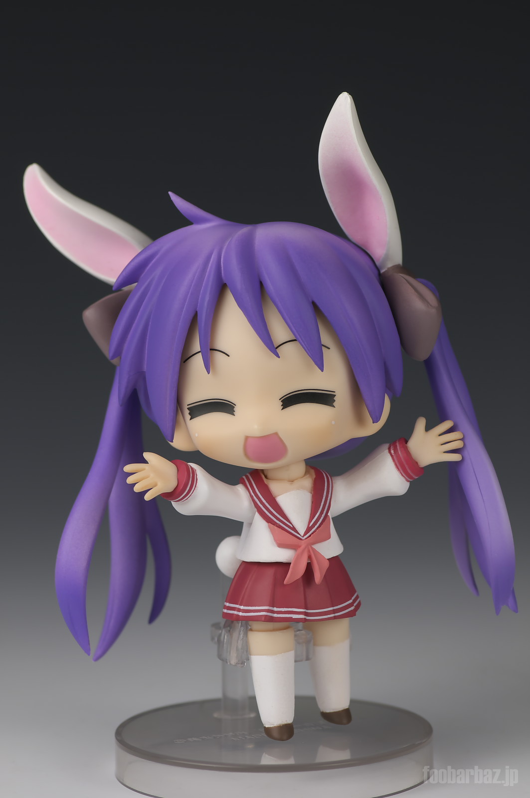 3種類のバージョンは共通パーツのほかにそれぞれ特有の顔とパーツが付属し,コンプVer.はこなたはねこみみしっぽの笑顔,かがみはうさみみしっぽのデレ顔が付属しています。