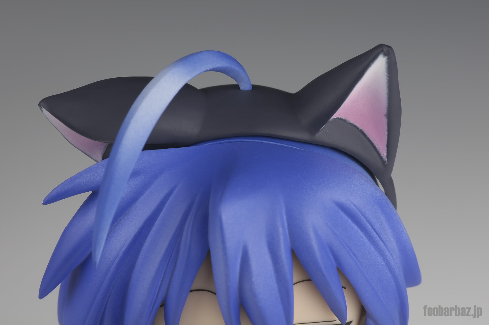 | ねこみみと,それを貫く強靱なアホ毛(^^; ねこみみは取り外し可能ですが,パーツの合いがイマイチで,取り付けた際に大きな隙間が出来ます。 |