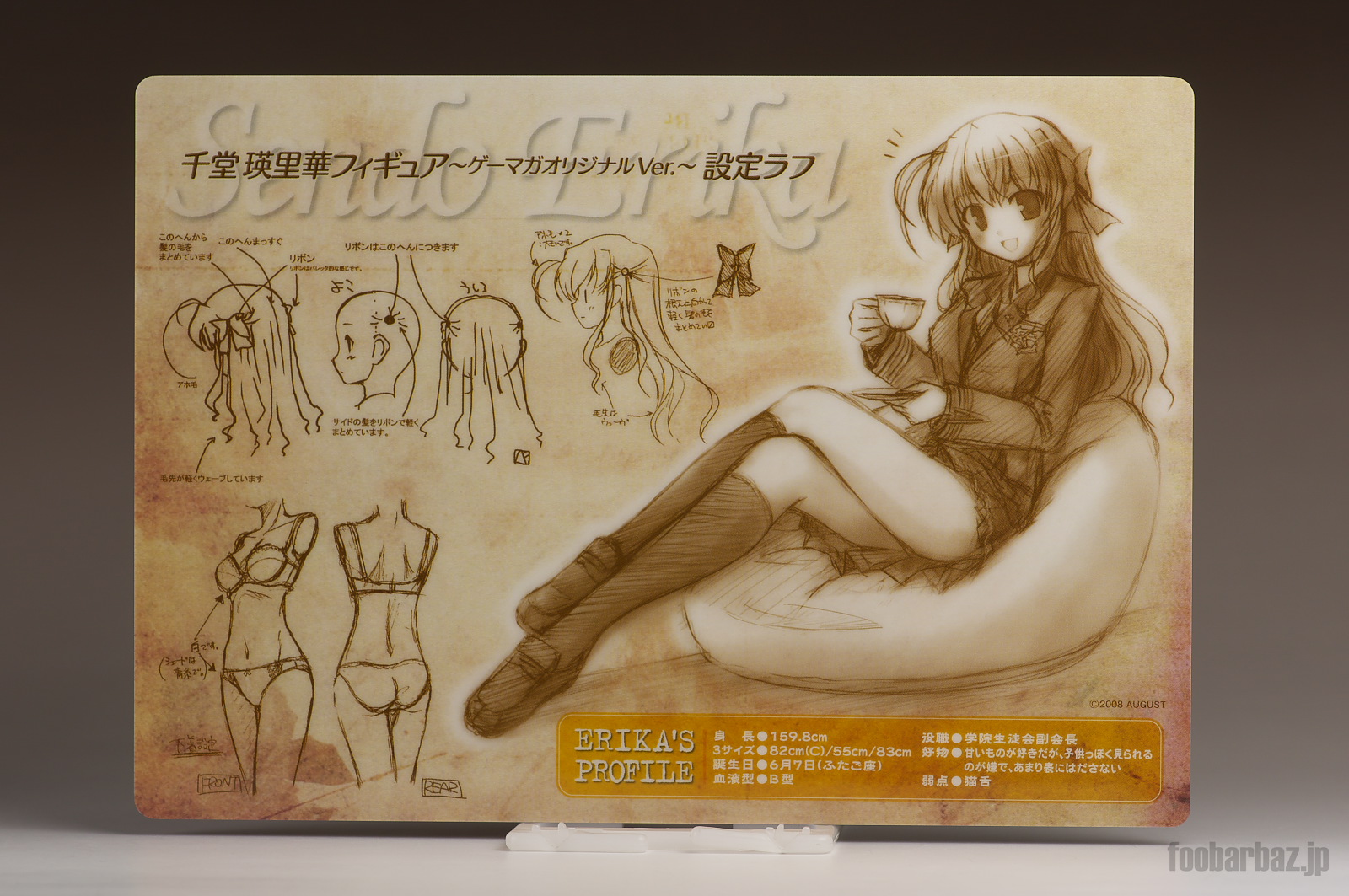 | ゲーマガ誌上,SBCr特典のミニ下敷き。 フィギュアの元イラスト,設定ラフが描かれています。 |
