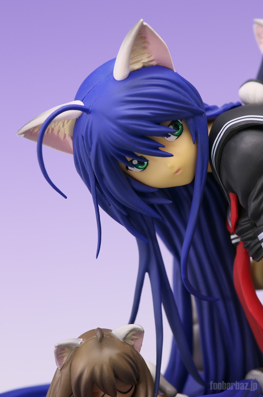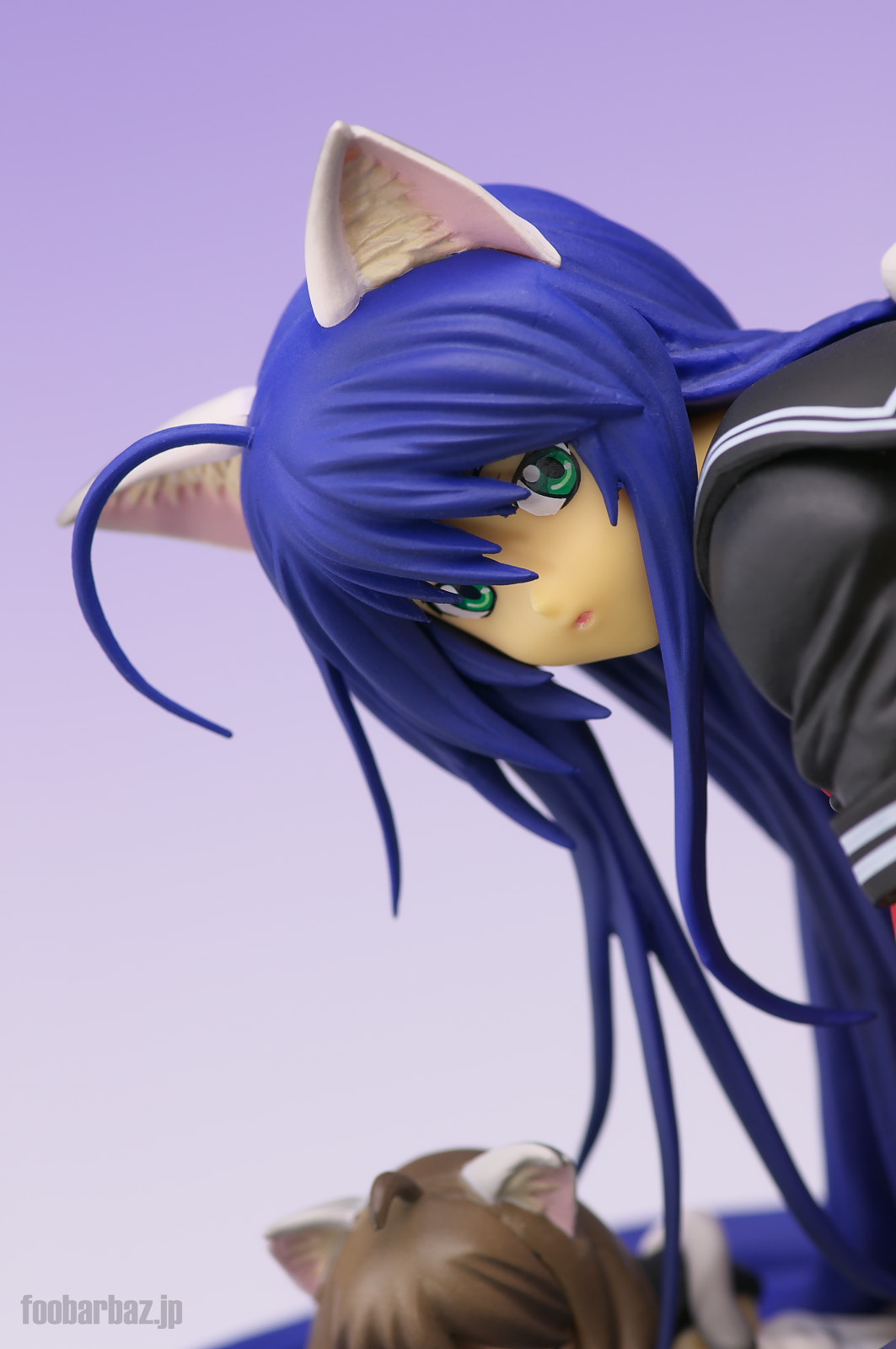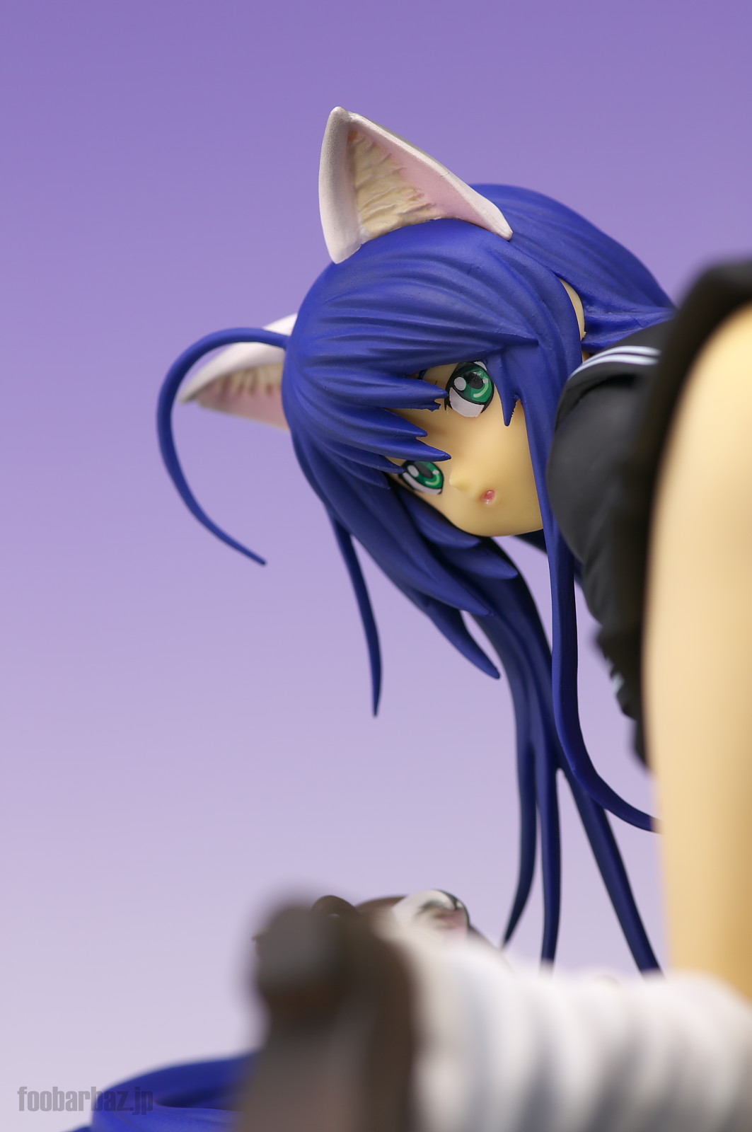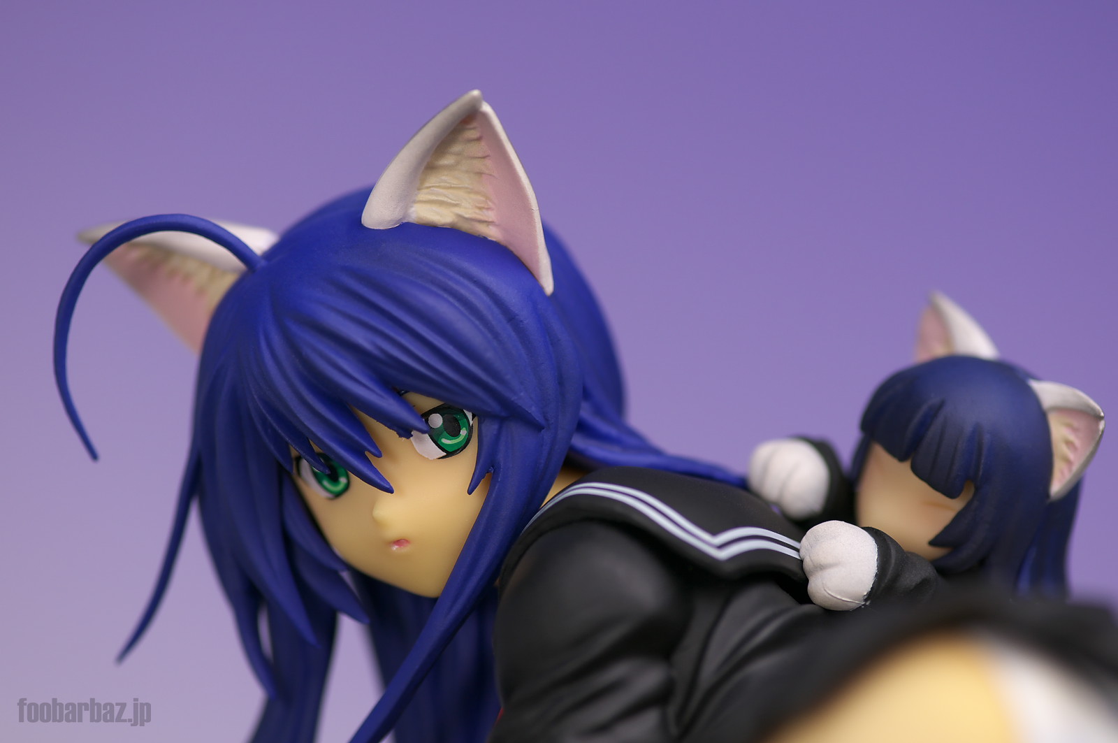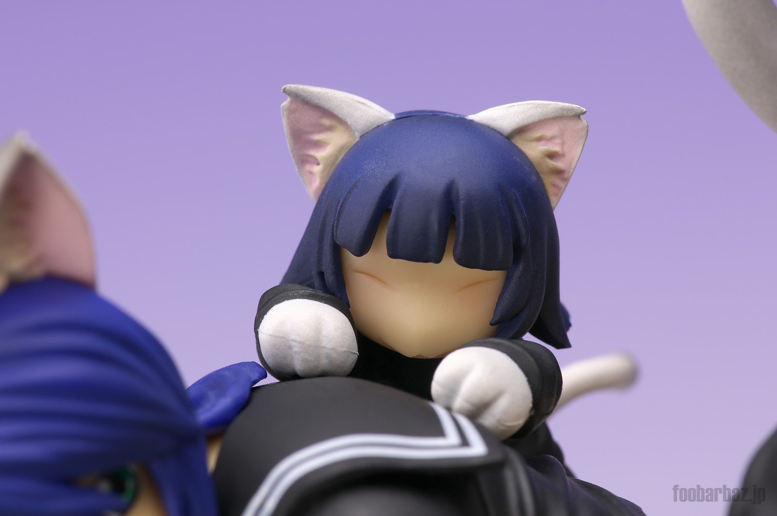 | 涼やかな瞳が美しいお顔。美人さんなだけに,頭に付けたネコミミがよけいに映えますな(^^; 造形はちょっとダル目で,髪の毛の塗装もべったり気味。 | |