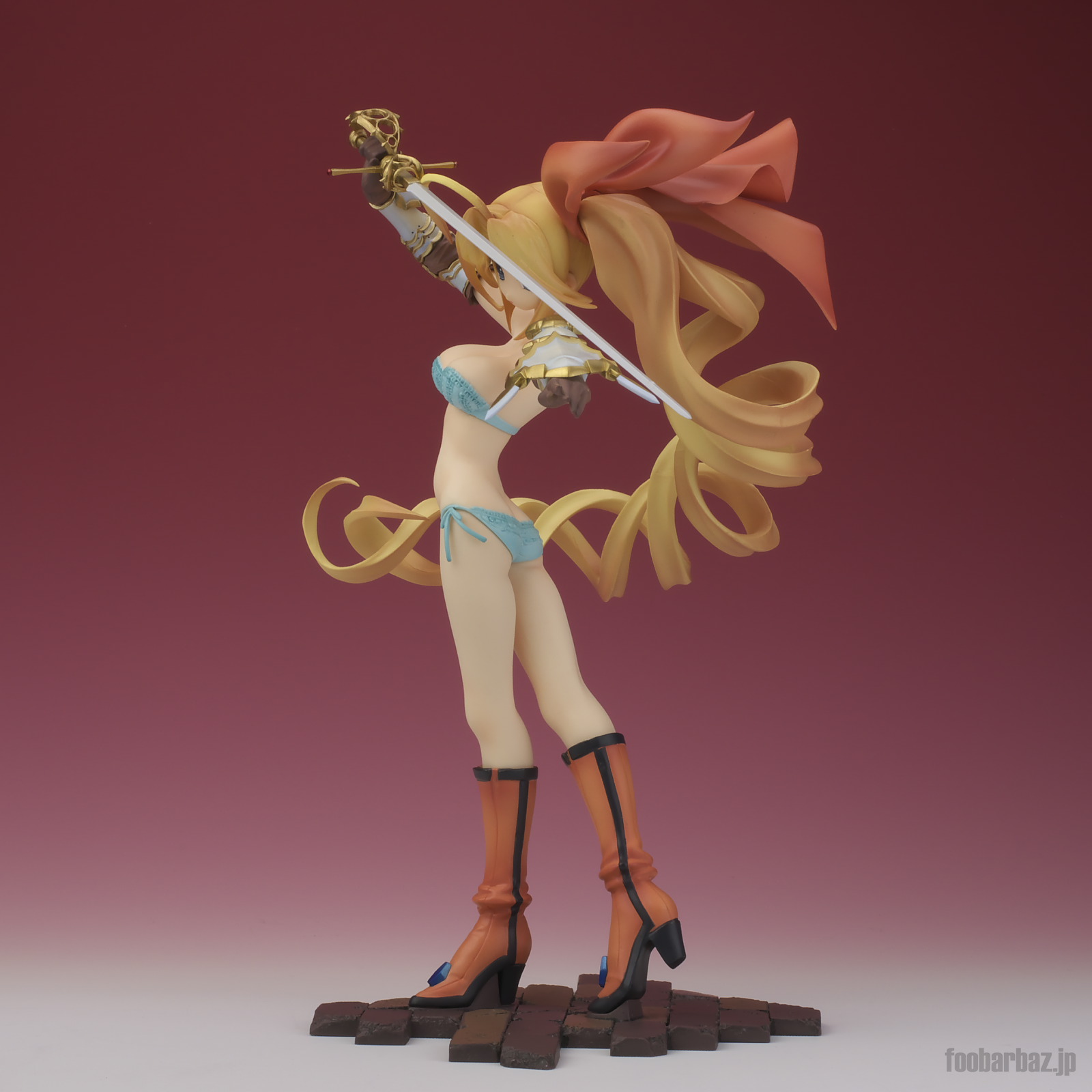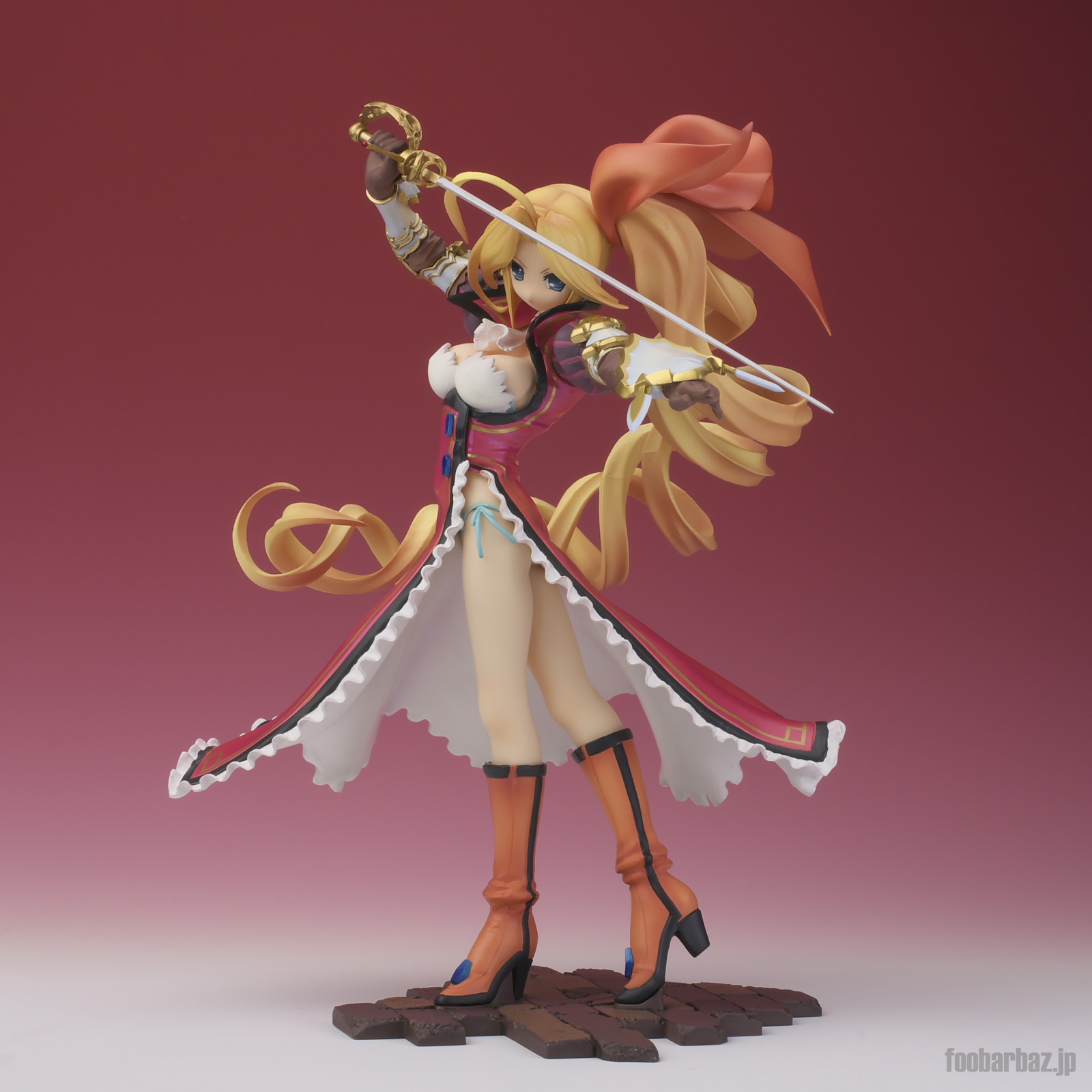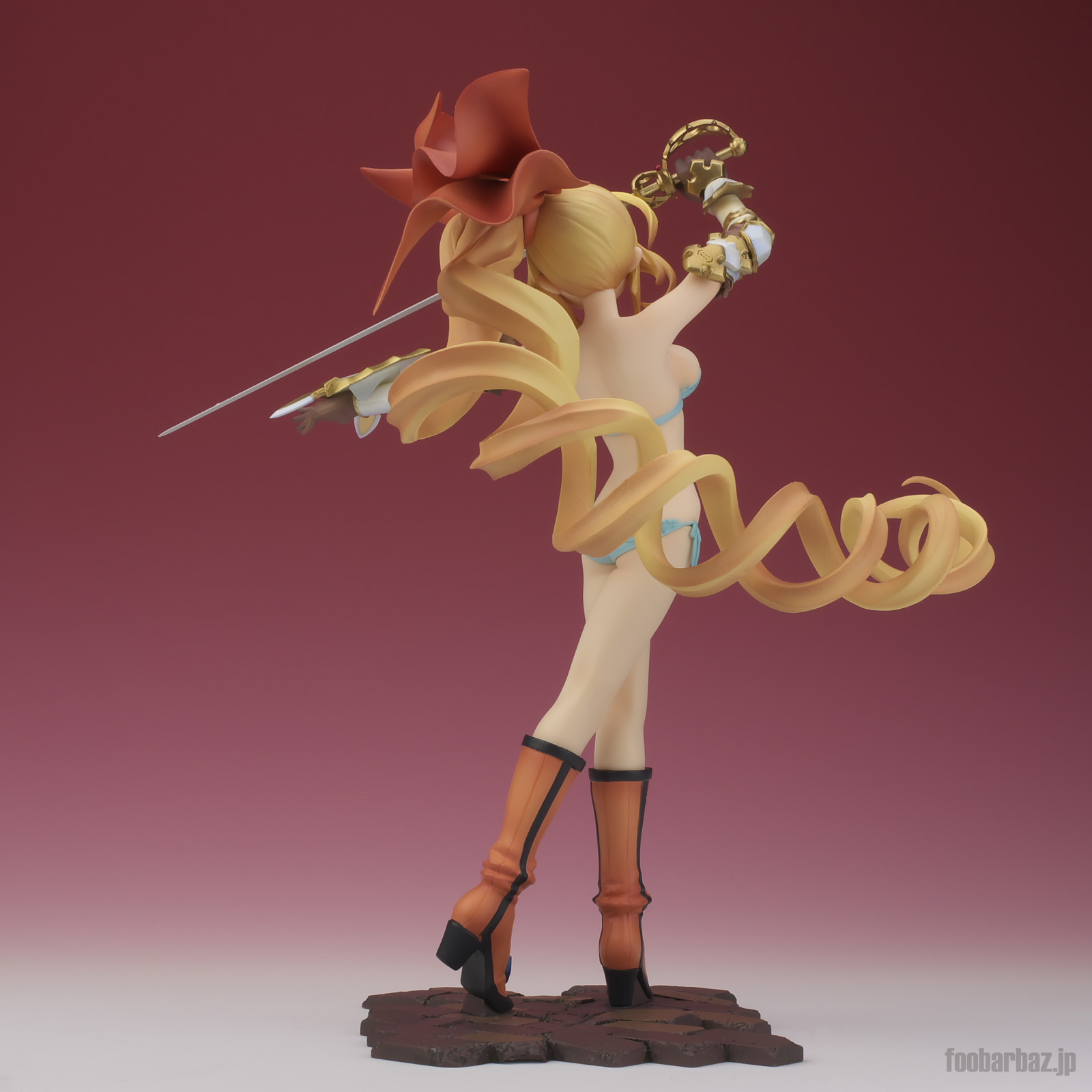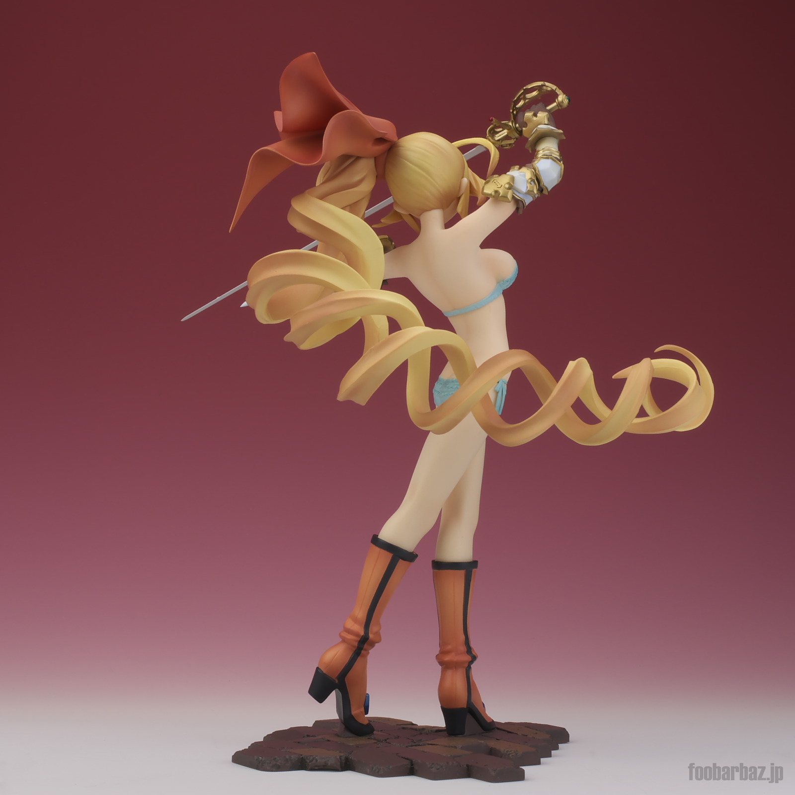 | 8方向。レイピアを頭上に掲げ,敵を見据えたりりしいポーズ。 元絵を生かしつつ,立体物として違和感なく仕上げています。 | |