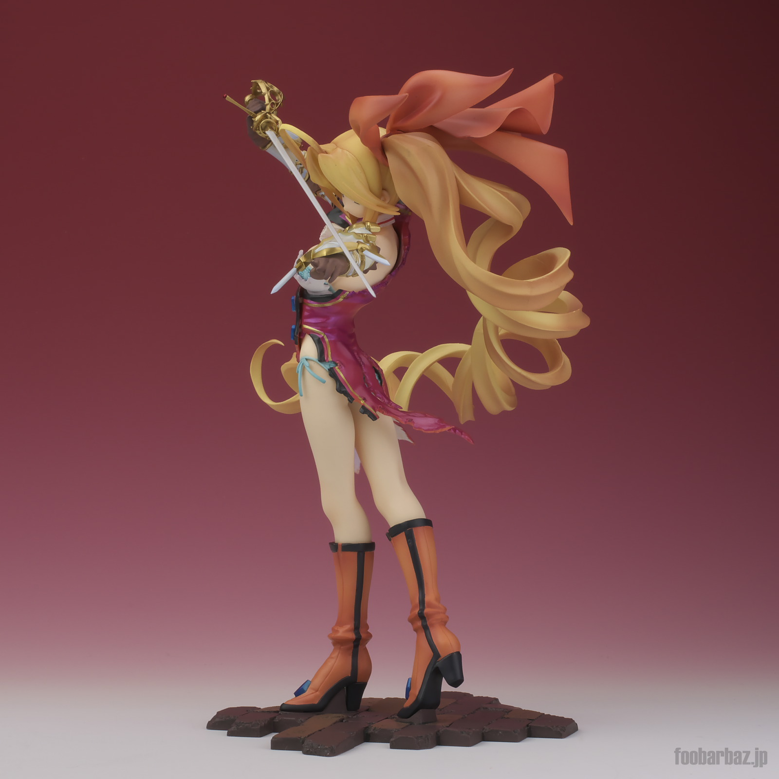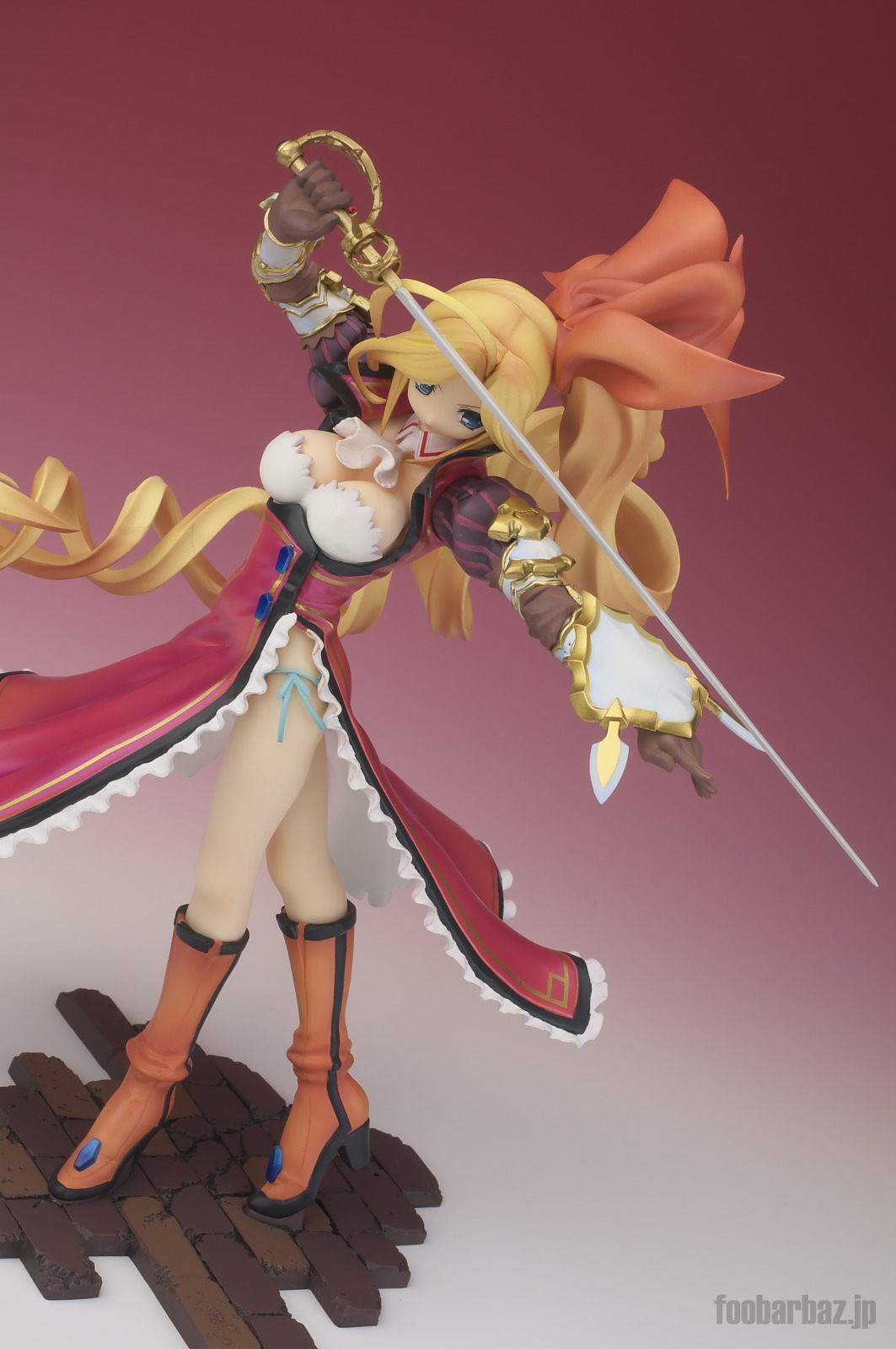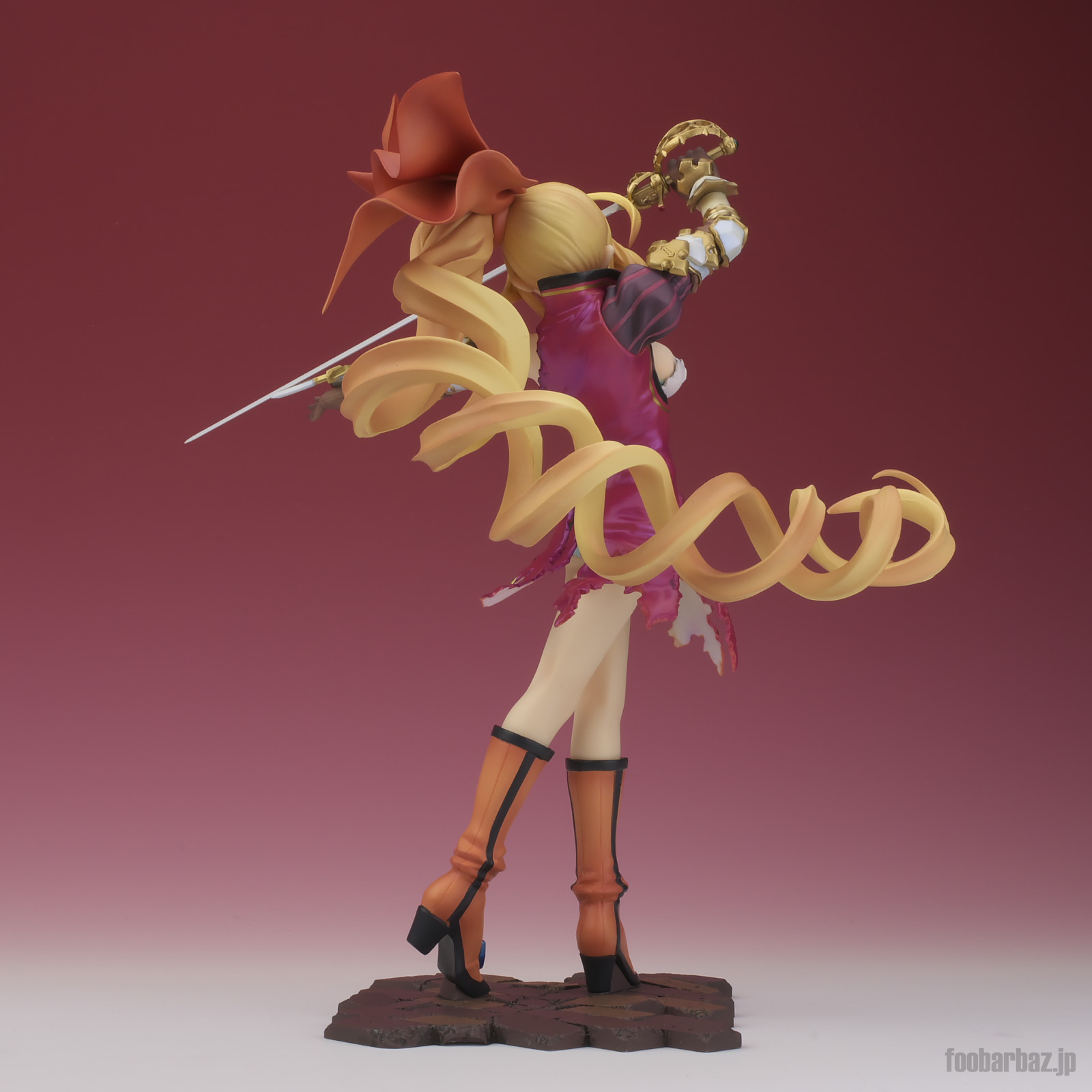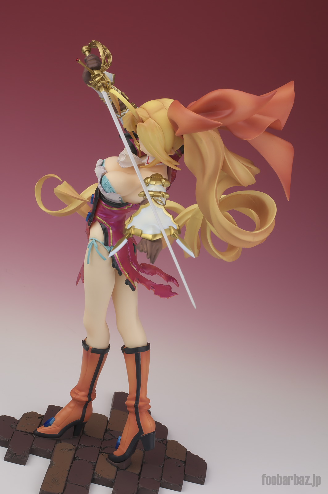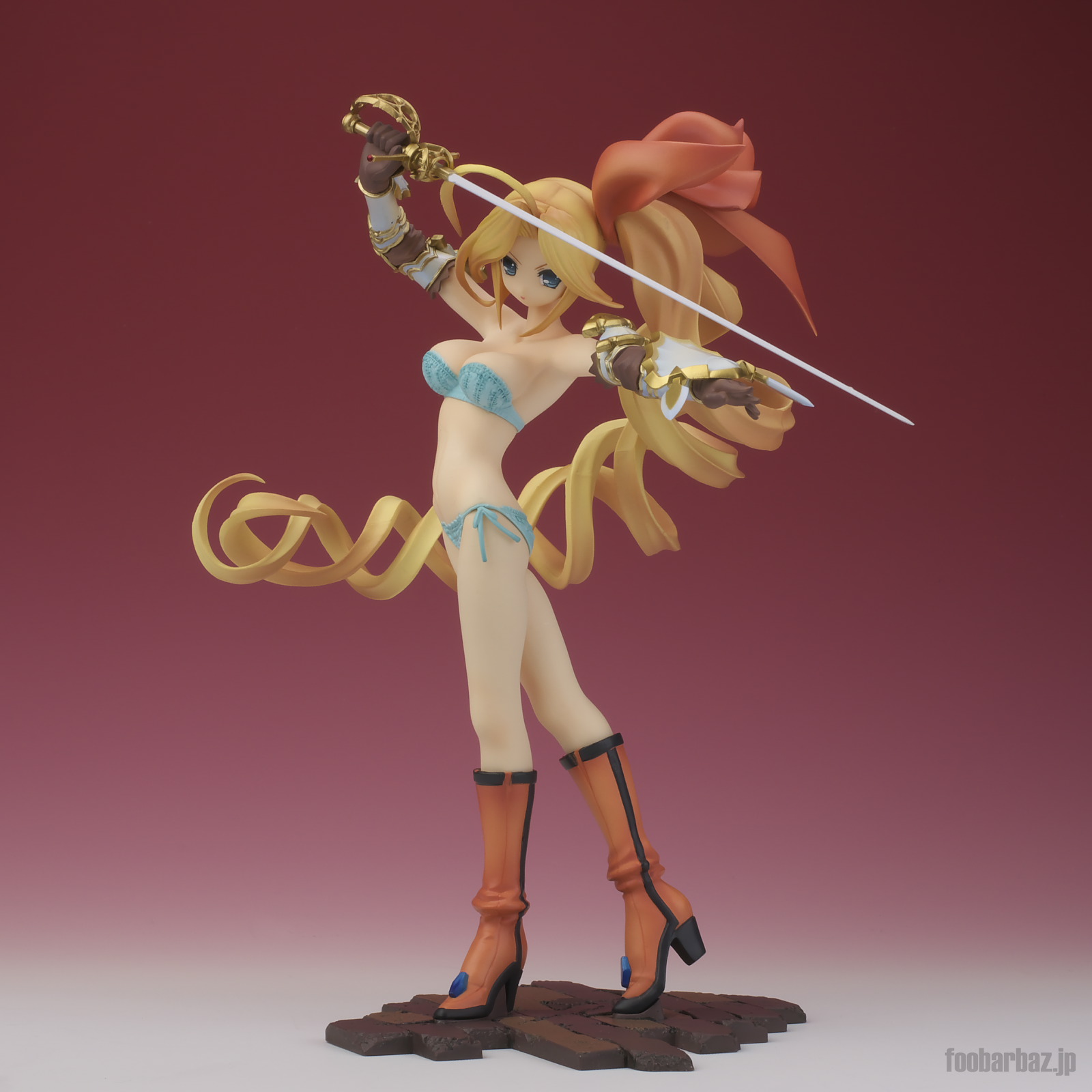 | 8方向。レイピアを頭上に掲げ,敵を見据えたりりしいポーズ。 元絵を生かしつつ,立体物として違和感なく仕上げています。 | |