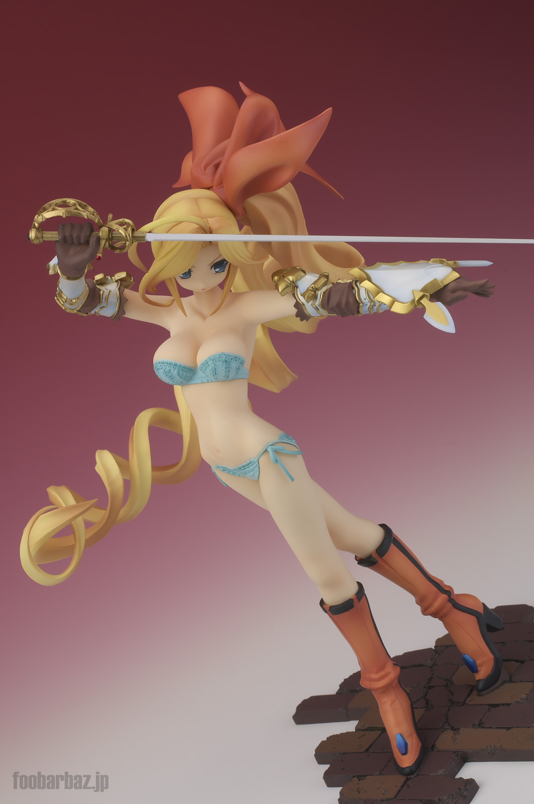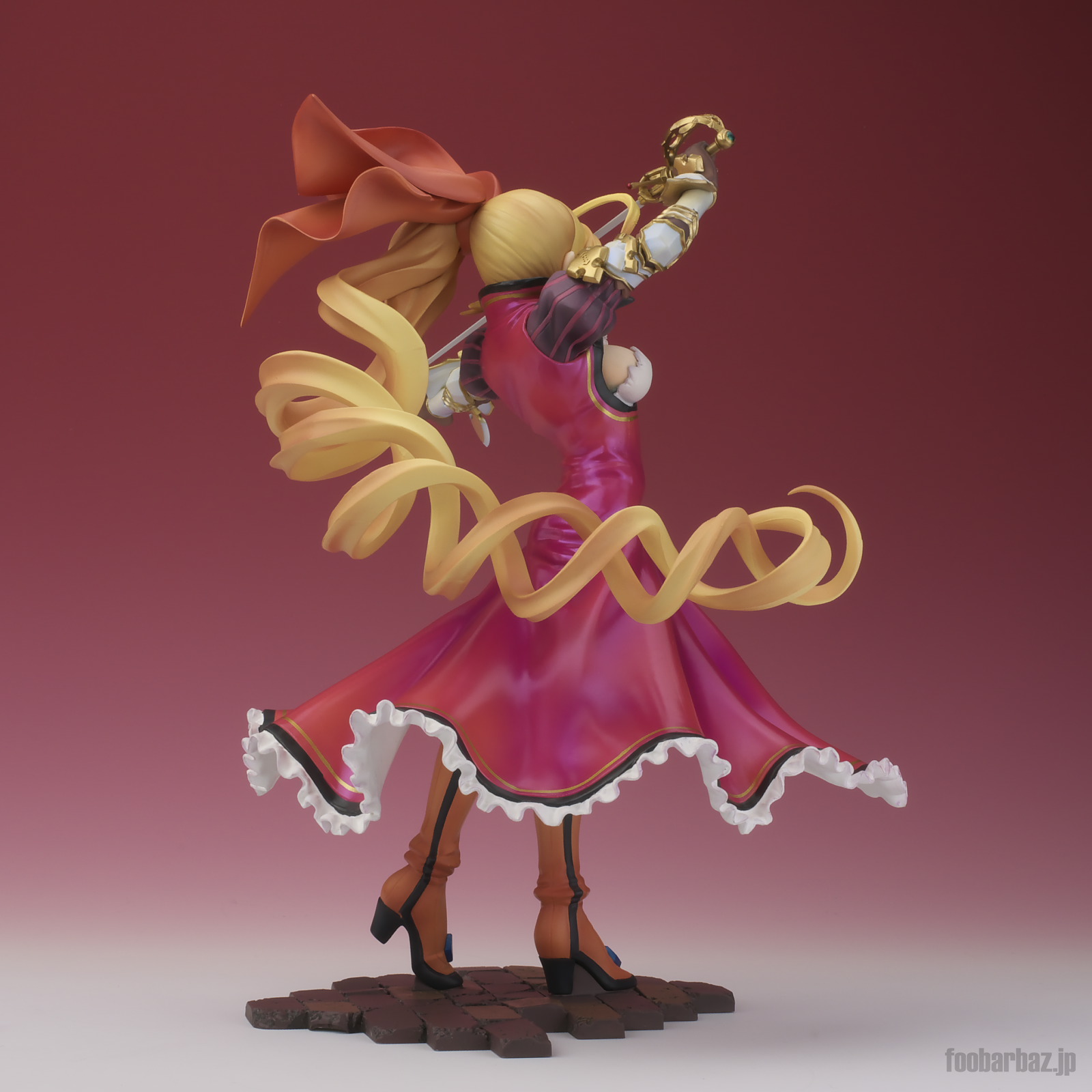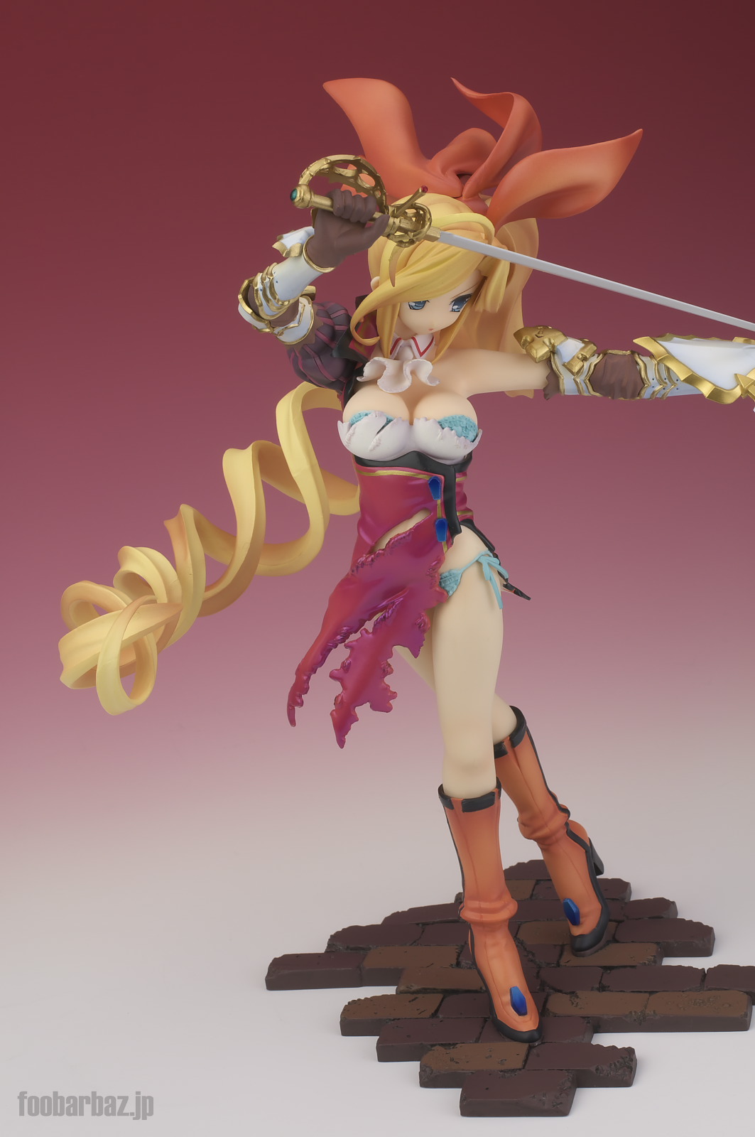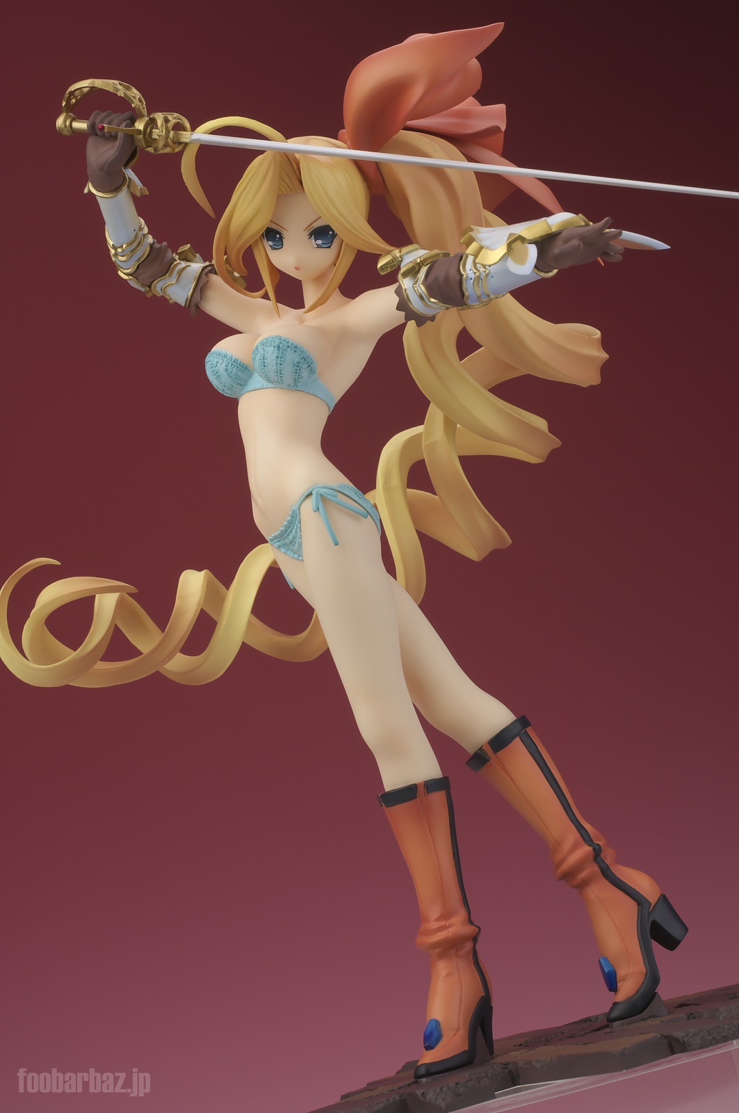 | 8方向。レイピアを頭上に掲げ,敵を見据えたりりしいポーズ。 元絵を生かしつつ,立体物として違和感なく仕上げています。 | |