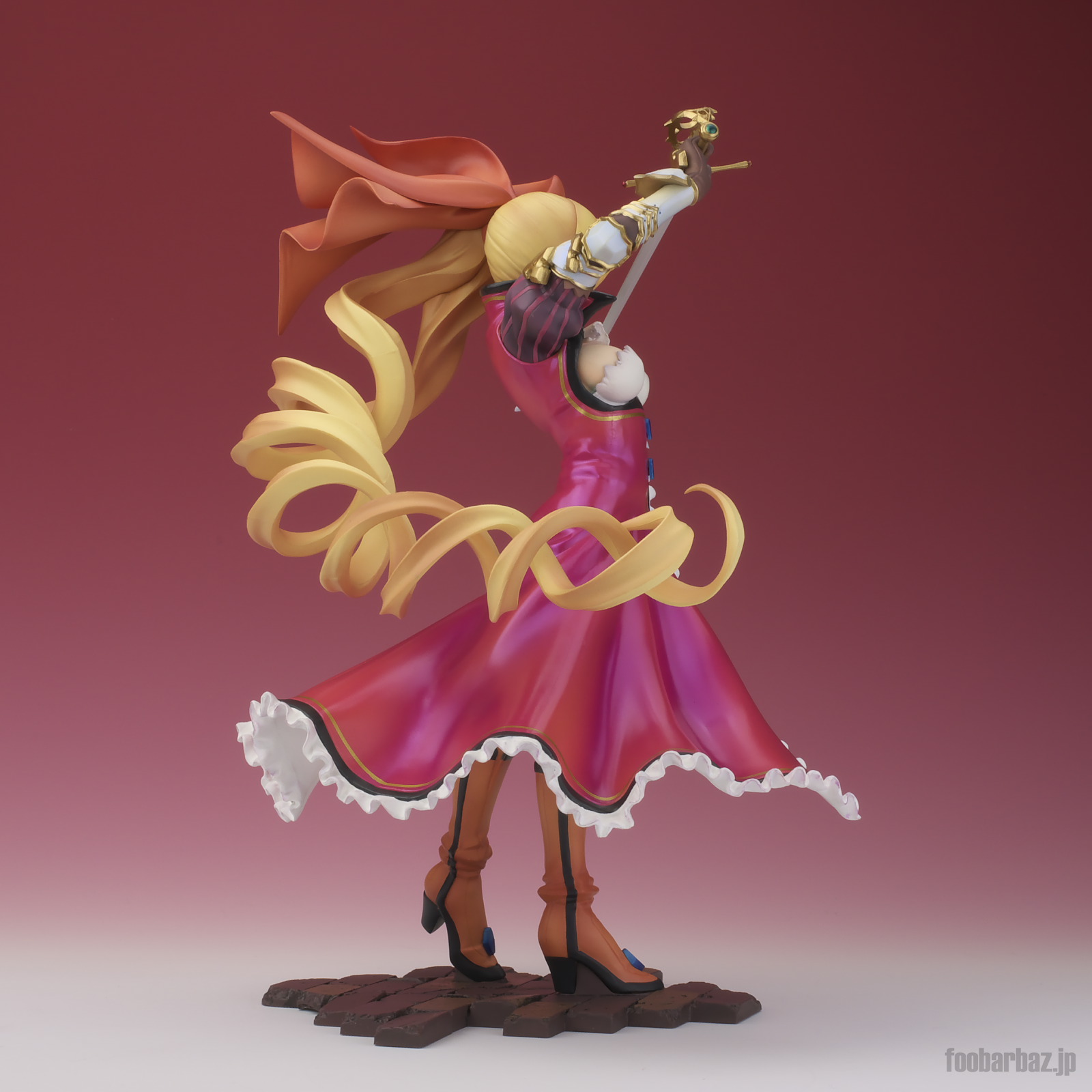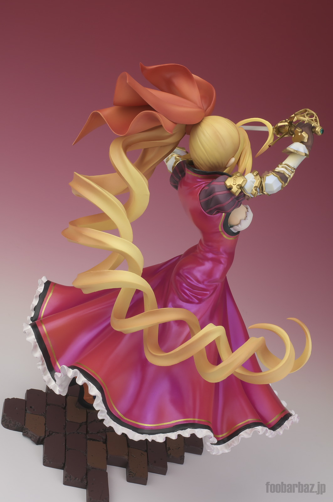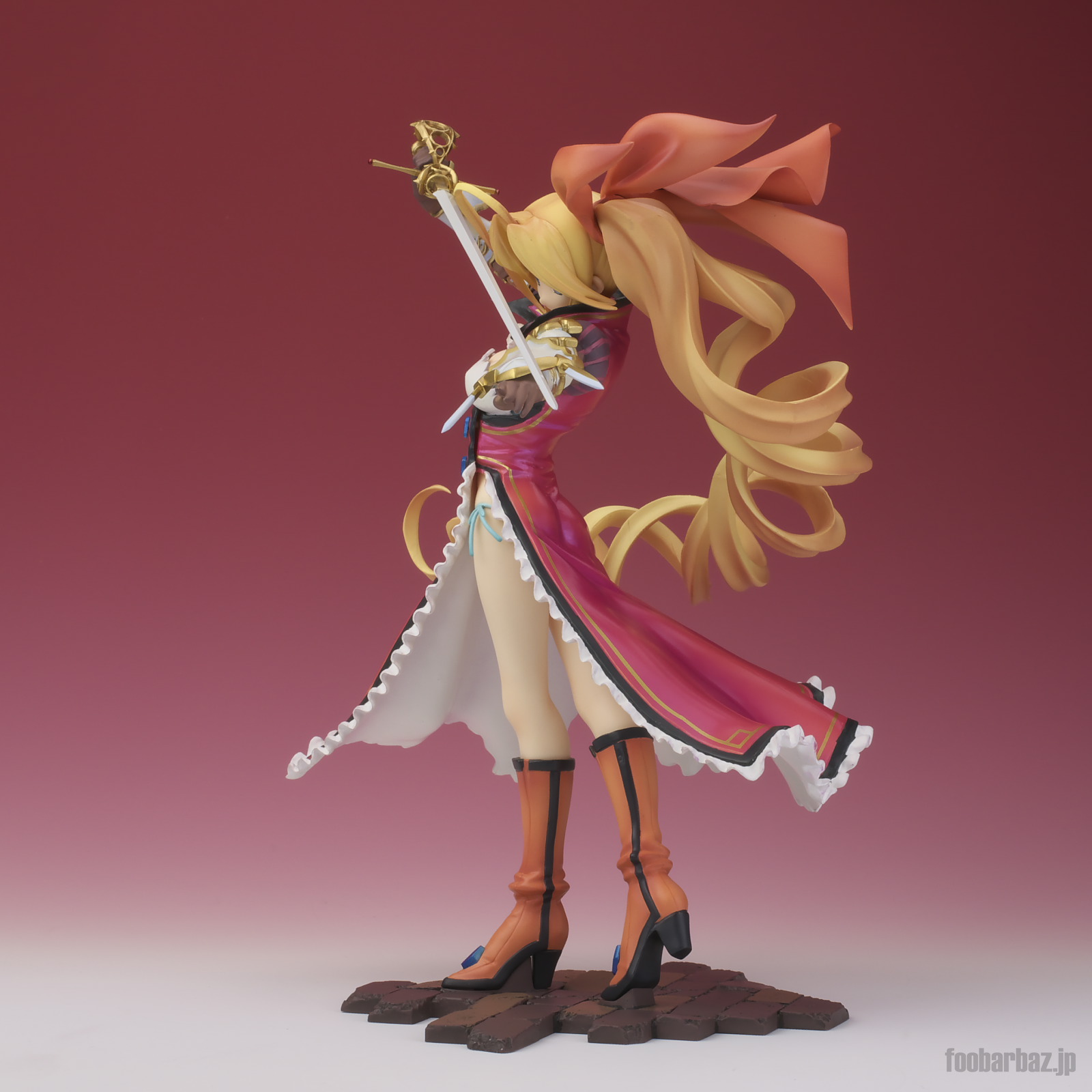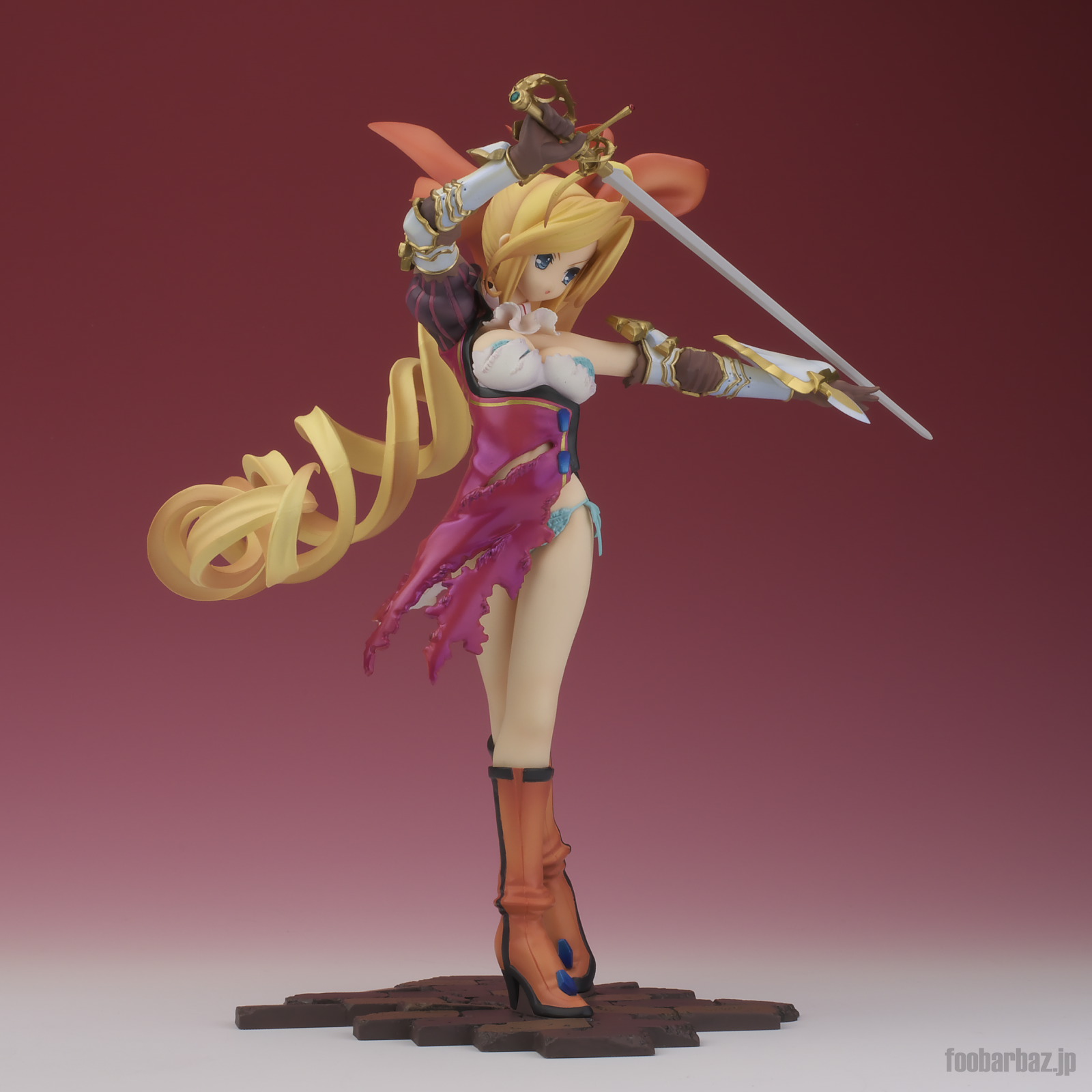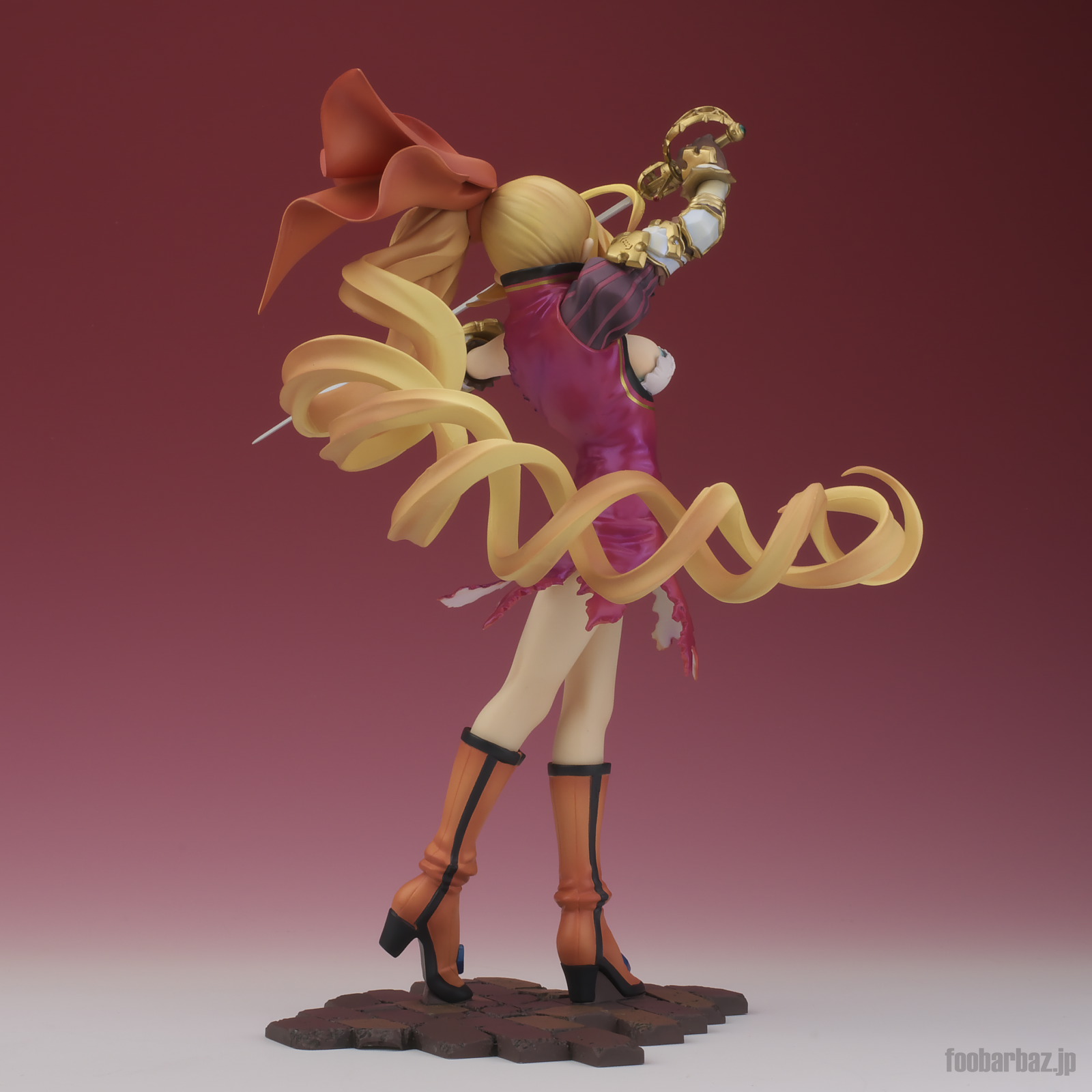 | 8方向。レイピアを頭上に掲げ,敵を見据えたりりしいポーズ。 元絵を生かしつつ,立体物として違和感なく仕上げています。 | |