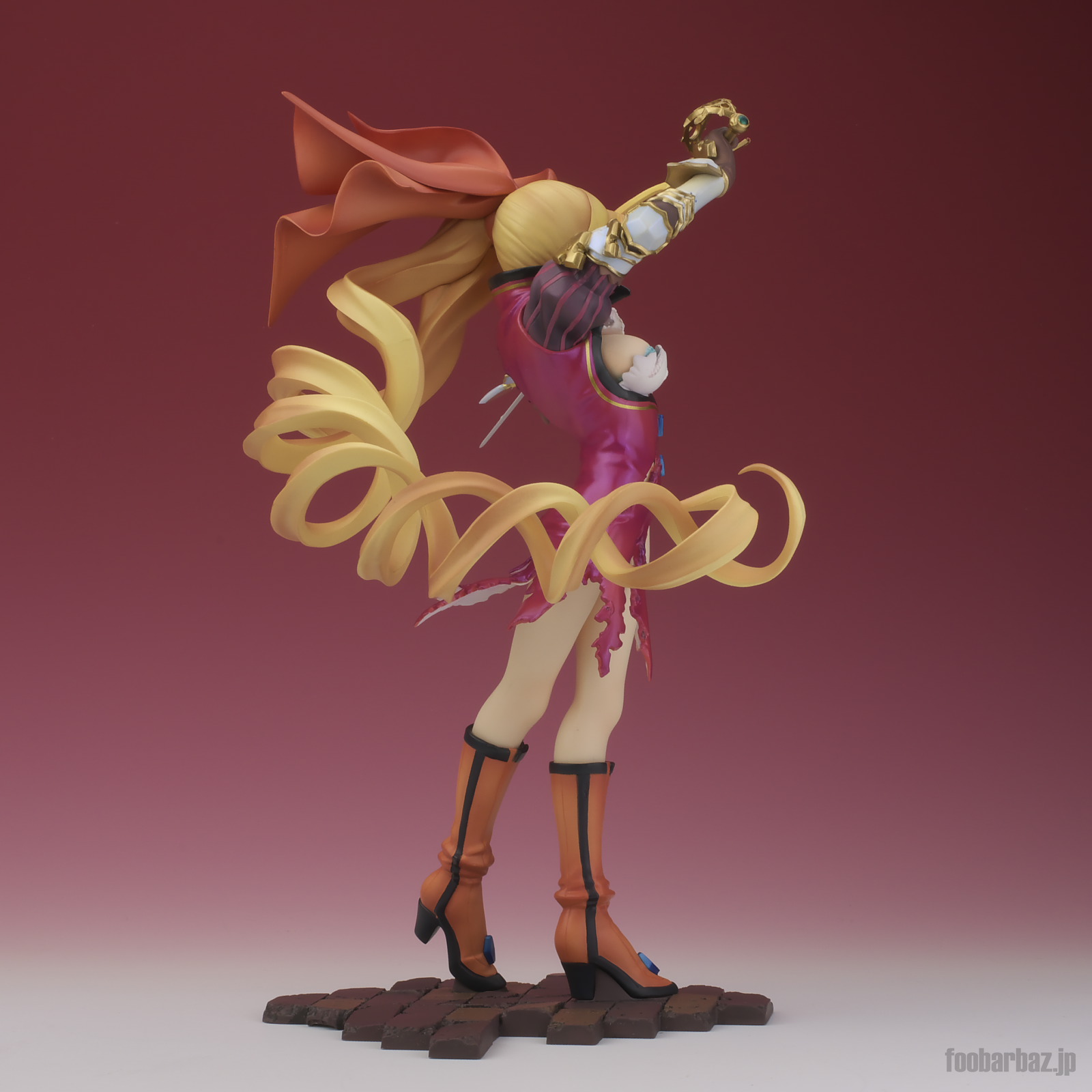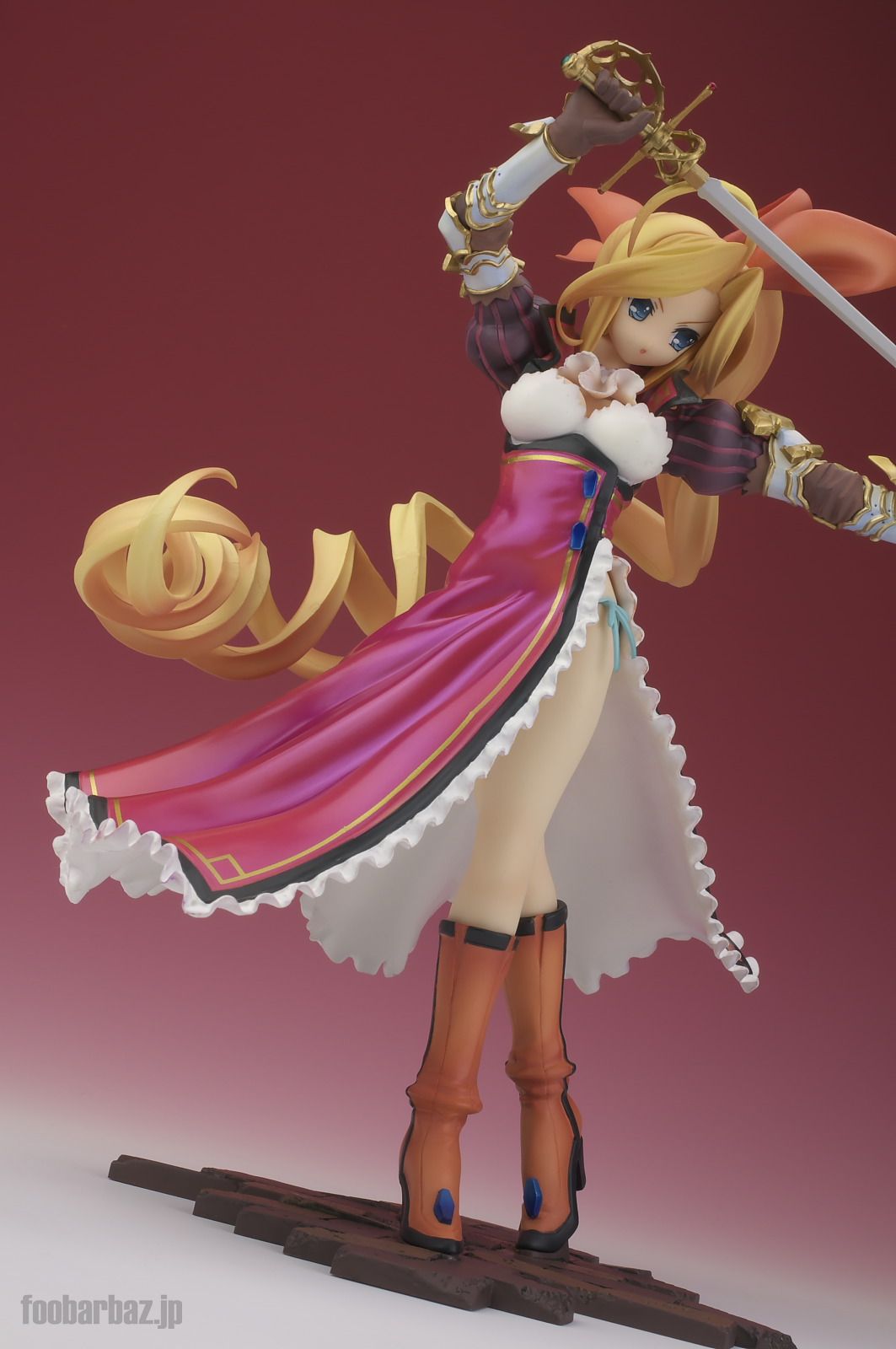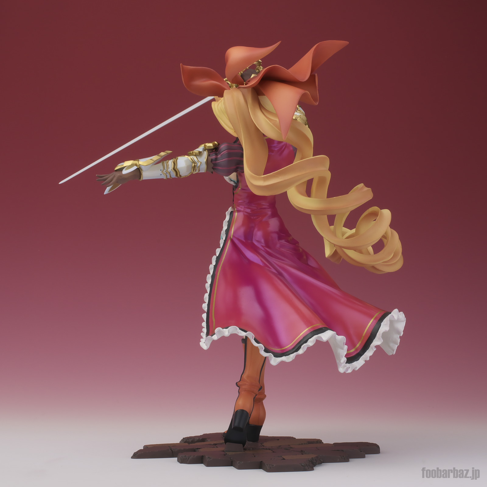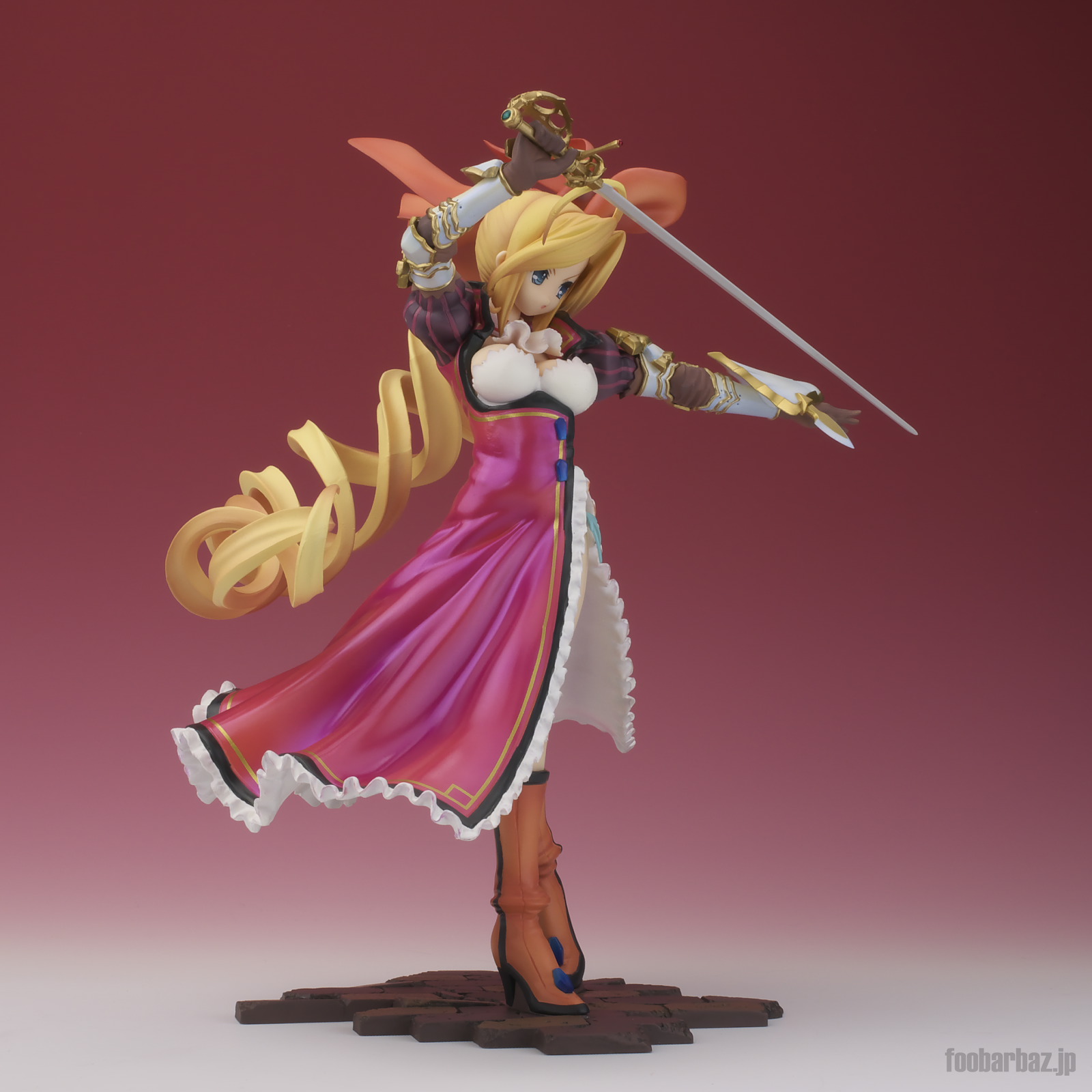| 8方向。レイピアを頭上に掲げ,敵を見据えたりりしいポーズ。 元絵を生かしつつ,立体物として違和感なく仕上げています。 | |