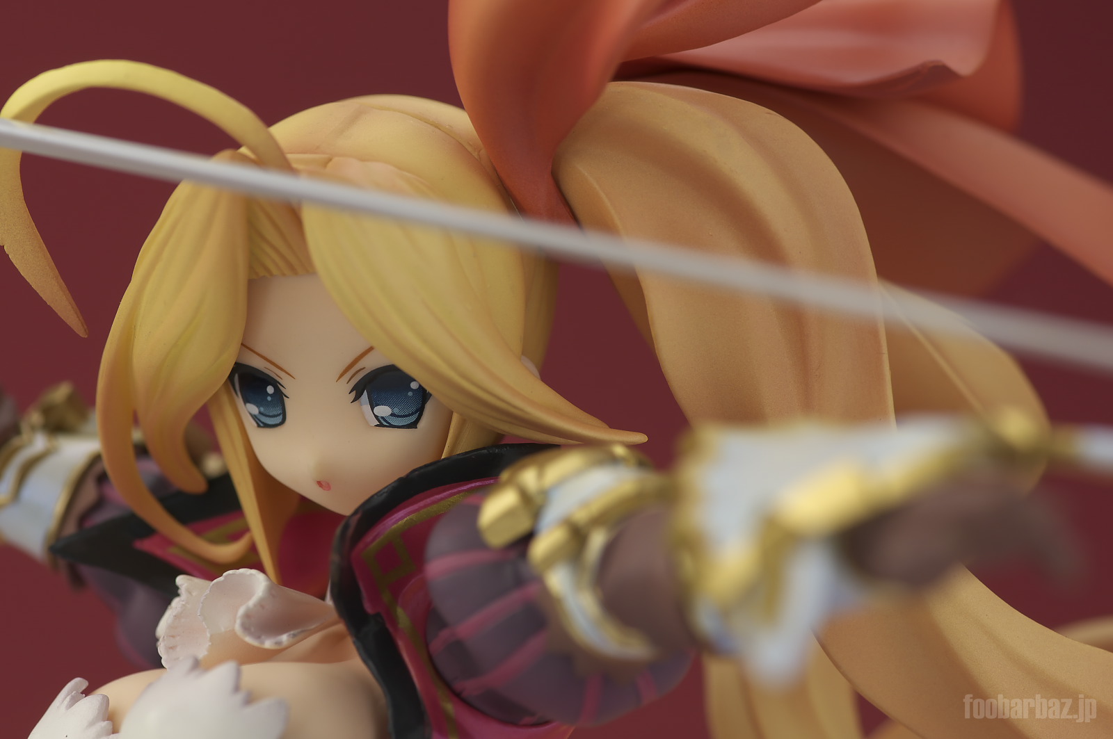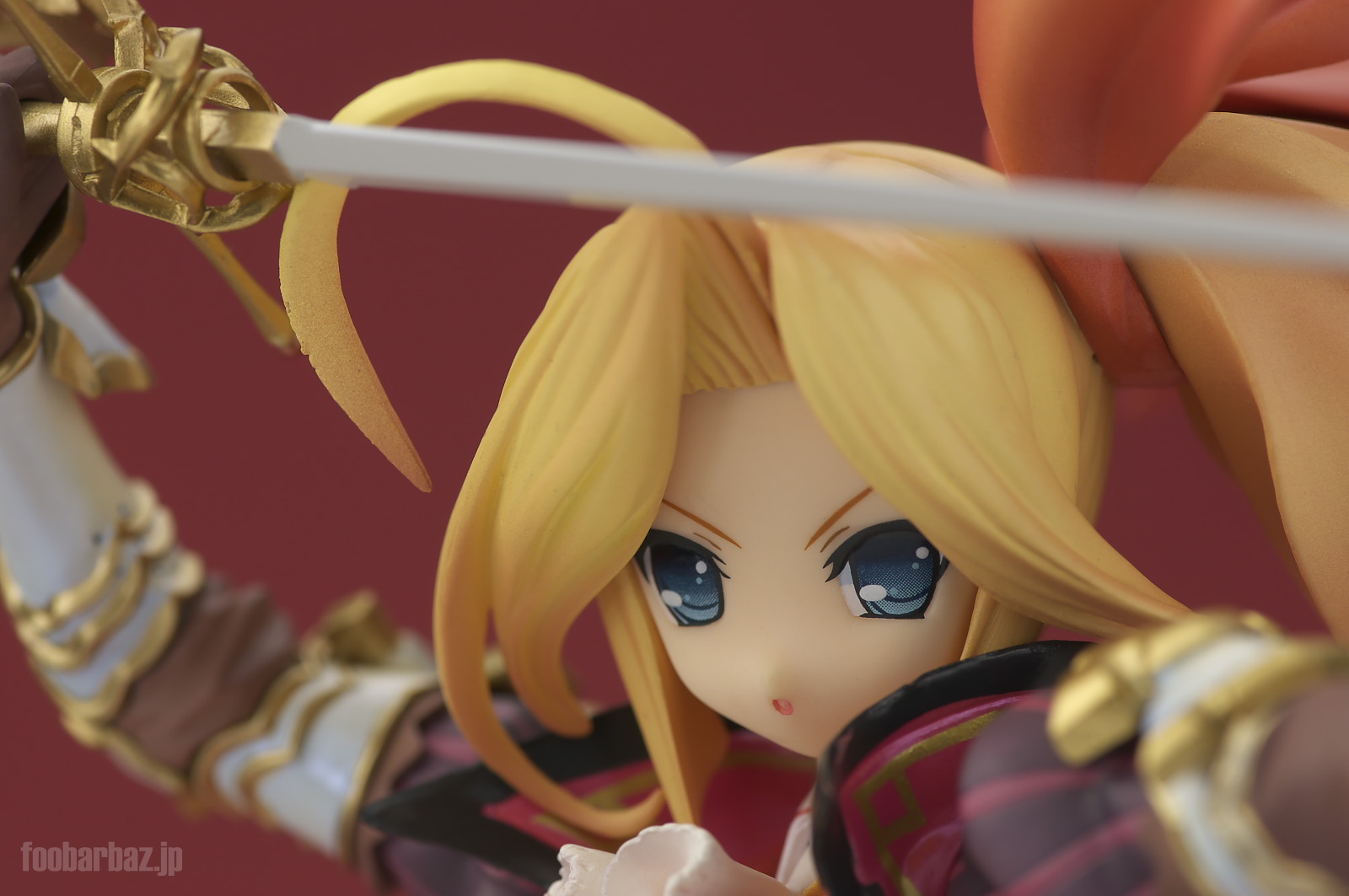 | キリリと上げたまなじりがめっさりりしいですな。 かわいらしい系のお顔にもかかわらず,いかにもといった勝ち気な表情がいい感じです。 おっきなアホ毛やちっちゃなお口もよく合っていますし,塗装もきれいで問題なし。 |