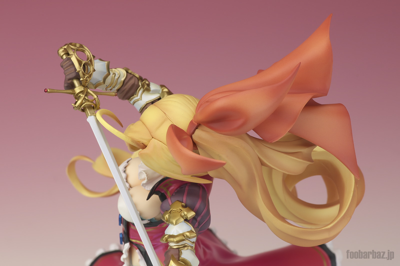 | もんのすごいボリュームのドリル,もとい巻き毛(^^; よくこんなパーツ抜けましたな(^^; エッジもなかなかシャープです。 頭の左で,負けないくらい大きなリボンでまとめられています。 |