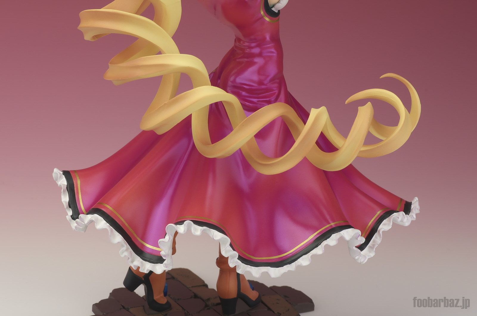 | ドレスはマジョーラカラーのように,角度に応じて色が変わる凝った塗装がされています。 大きく広がった裾から覗くフリルが粋ですな。 |