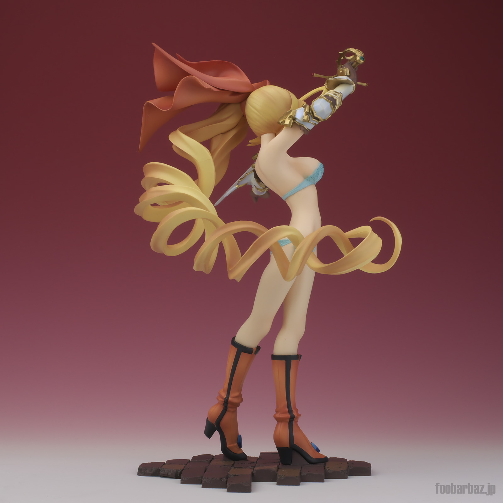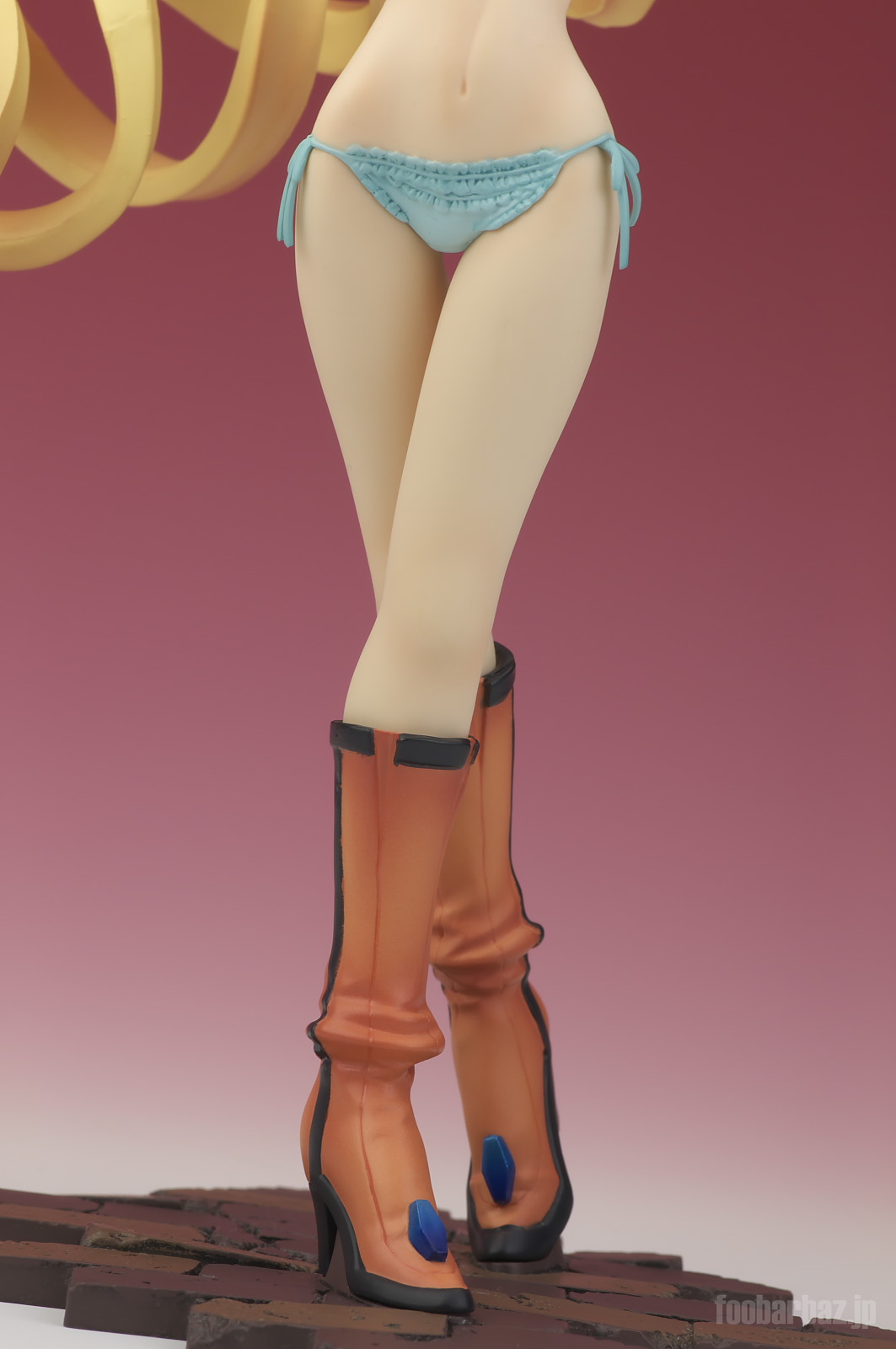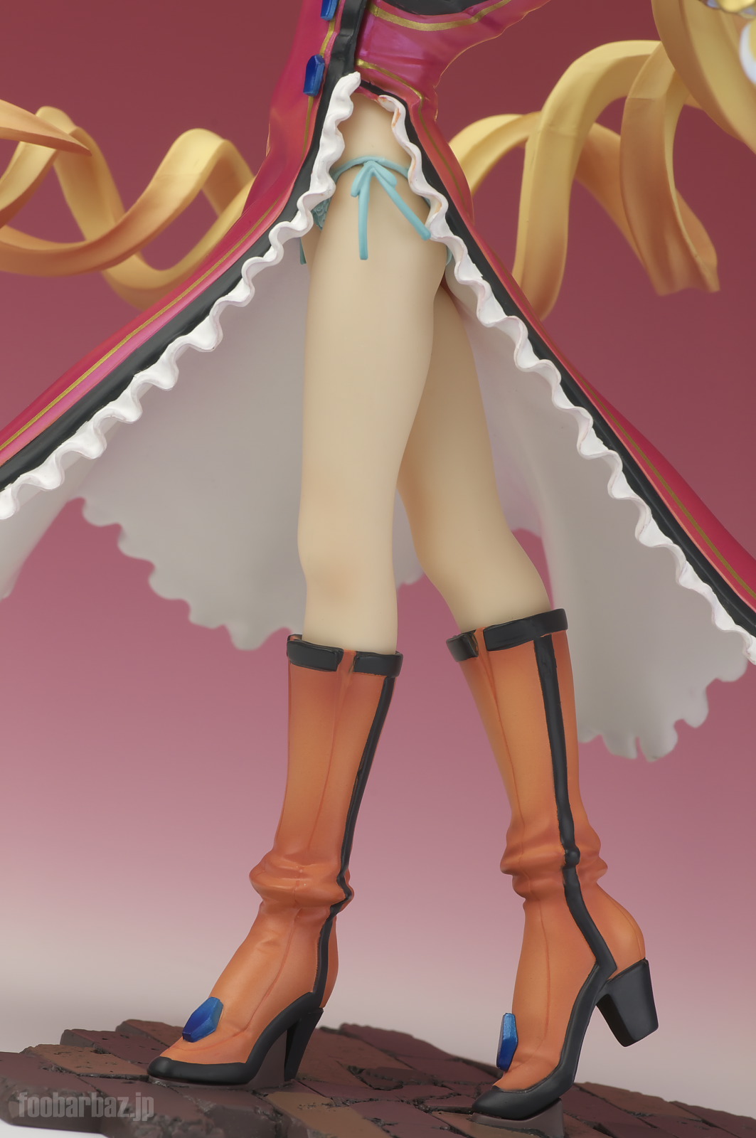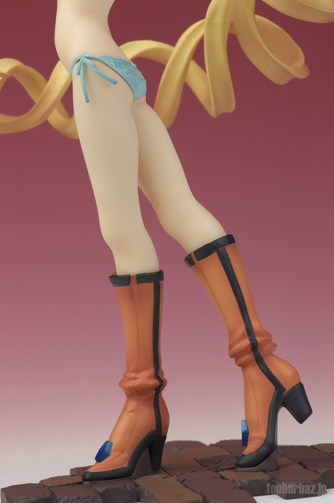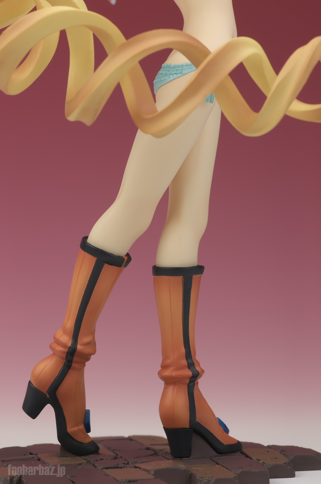 | 腰の上まで大きく開いたスリット。おかげで美しいおみ足がよく見えます(^^; ヒモパンの紐も同様に丸見えです(^^; 足元のブーツも良くできています。 | |
