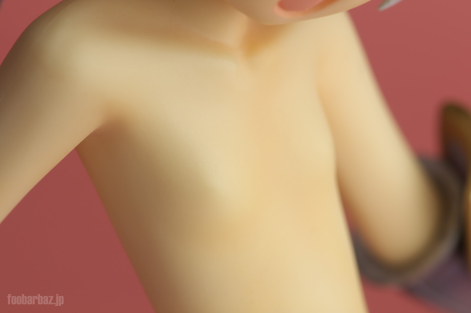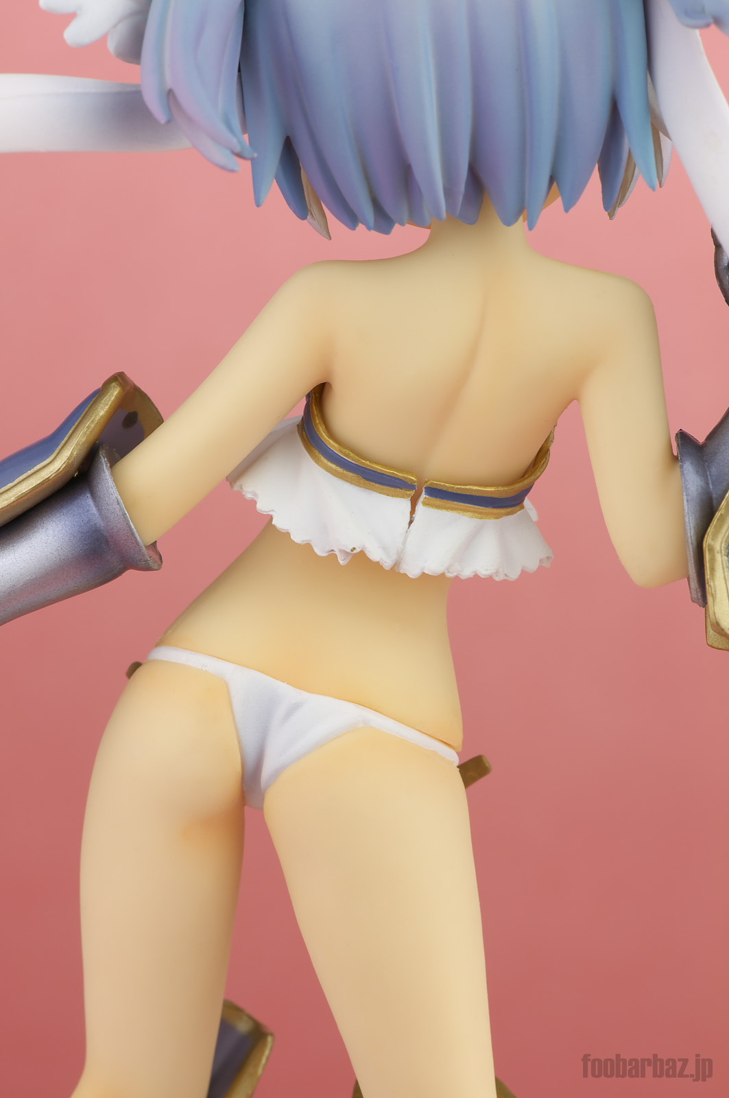 | ブラは本来は後ろで接合されるのですが,ダボと呼べないくらい浅い接合部のため,撮影時はワックスで仮止めしてあります。 着衣で飾るなら,接着してしまった方がよさそう。 |