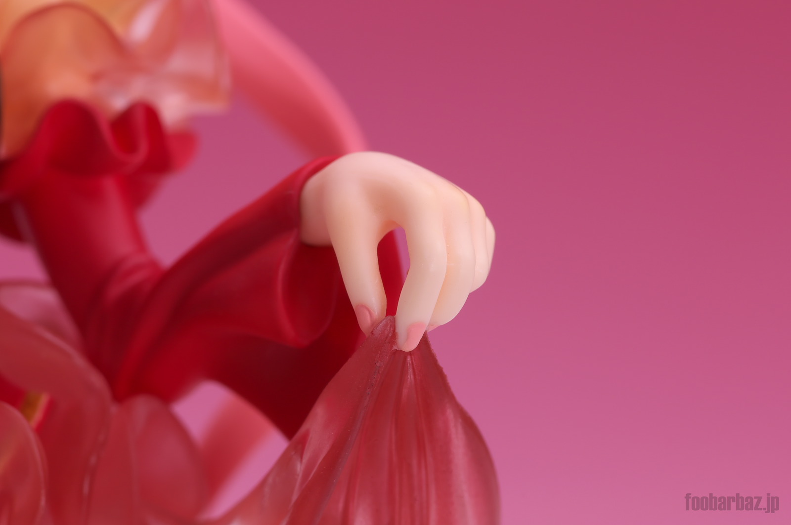 誘惑するような表情に扇情的なポーズ,匂い立つような色気が感じられます。ドレスのクリアパーツも効果的に使われていますね。