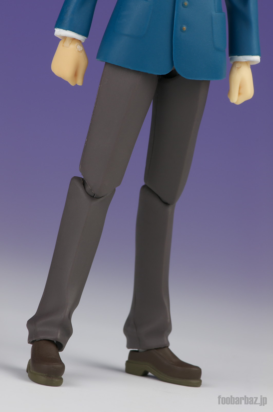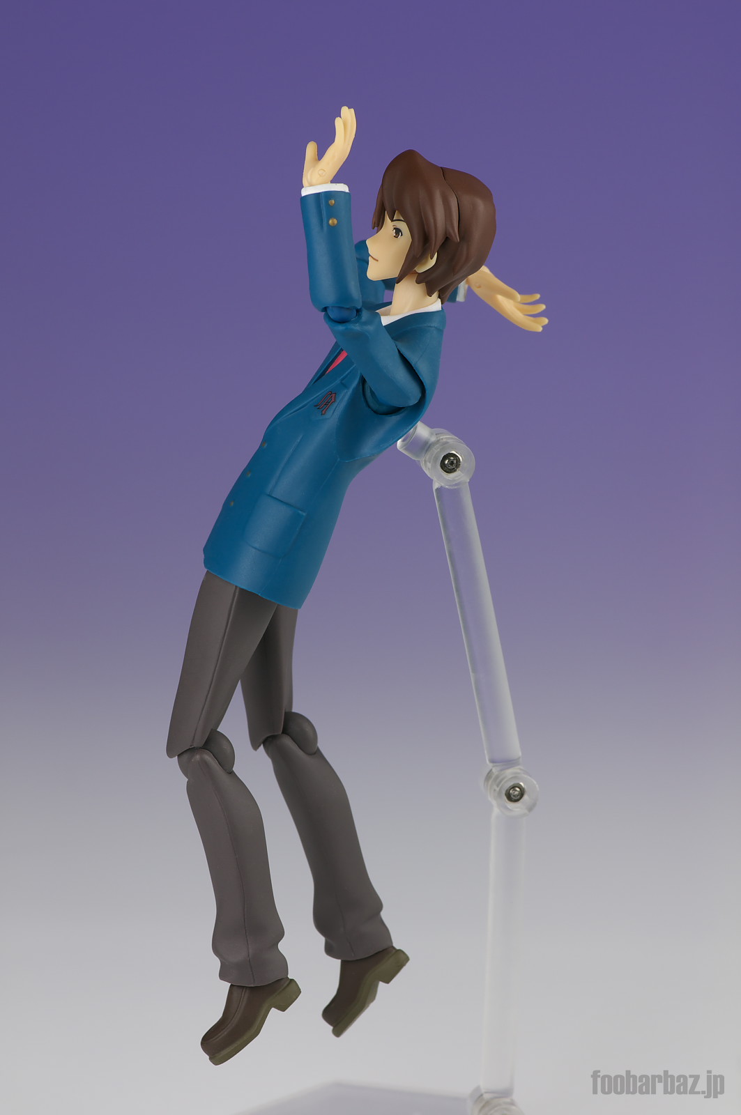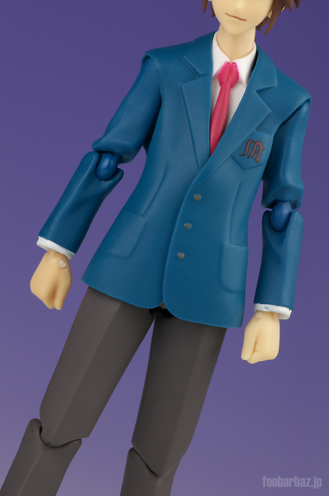 | おなじみ県立北高の制服。ブレザーの袖以外は軟質素材です。 色のせいか,今までのfigmaに比べ塗装の飛び散りが目立ちました。 | |