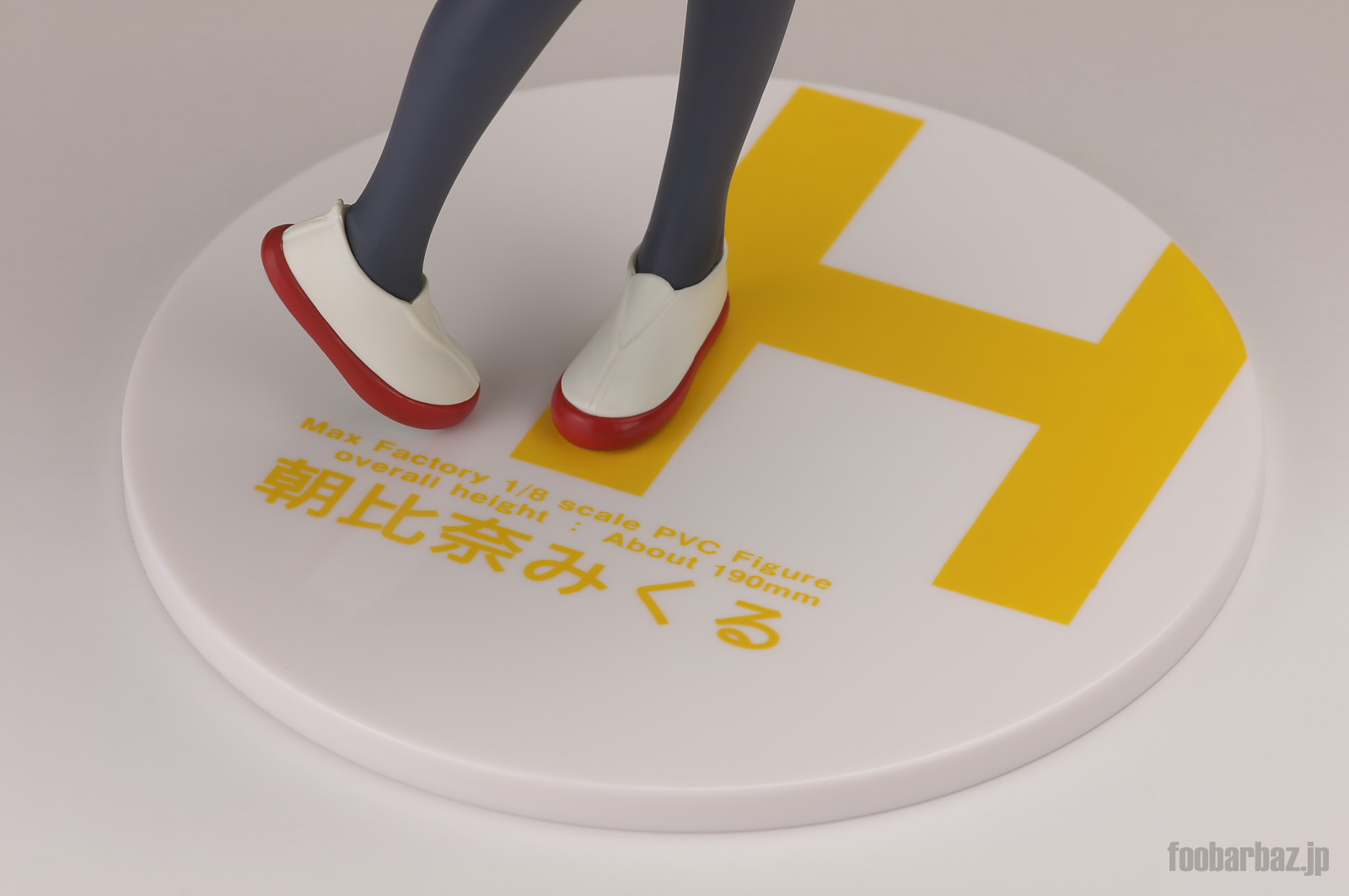 | 足元は赤のラインの入った上履き。 台座はMAXハルヒシリーズおなじみの「H」ロゴ入り |